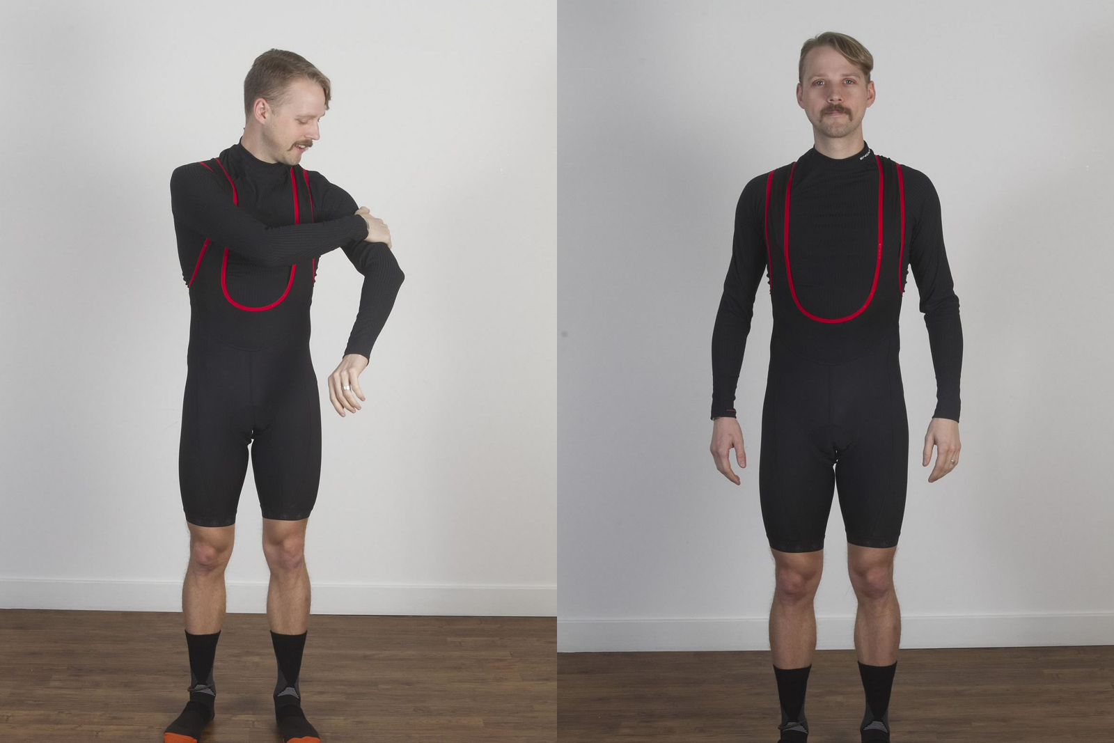 Your base layers in these situations are open to debate and personal preference. Many UK riders swear by merino wool in these situations. A long (or short) sleeve merino top (BaaBaa Merino Long Sleeve Base layer: £49.99) will be instantly warm and surprisingly comfortable against the skin and won’t pong or annoy you on long all-day efforts. It does very well if you’re doing a multiple day trip where it’ll take on several back-to-back days without smelling. Also good if you’re going out to the pub in the same base layer that you were riding in. However, once it does get wet, it can take an age to dry and can chill you quickly if you stop. Best to try one and see how you get on.