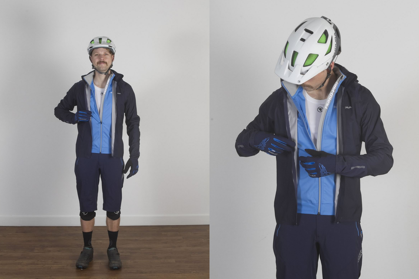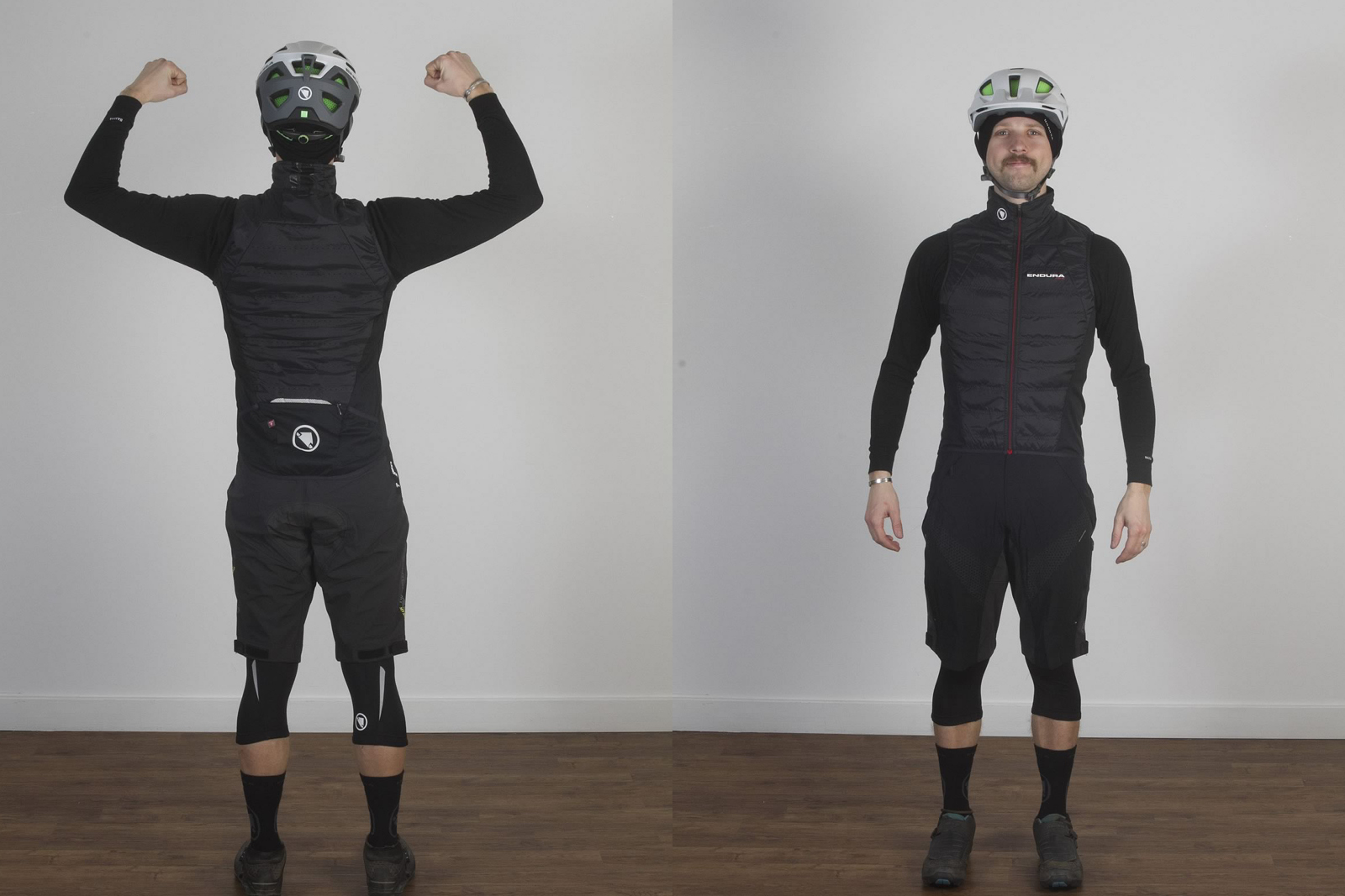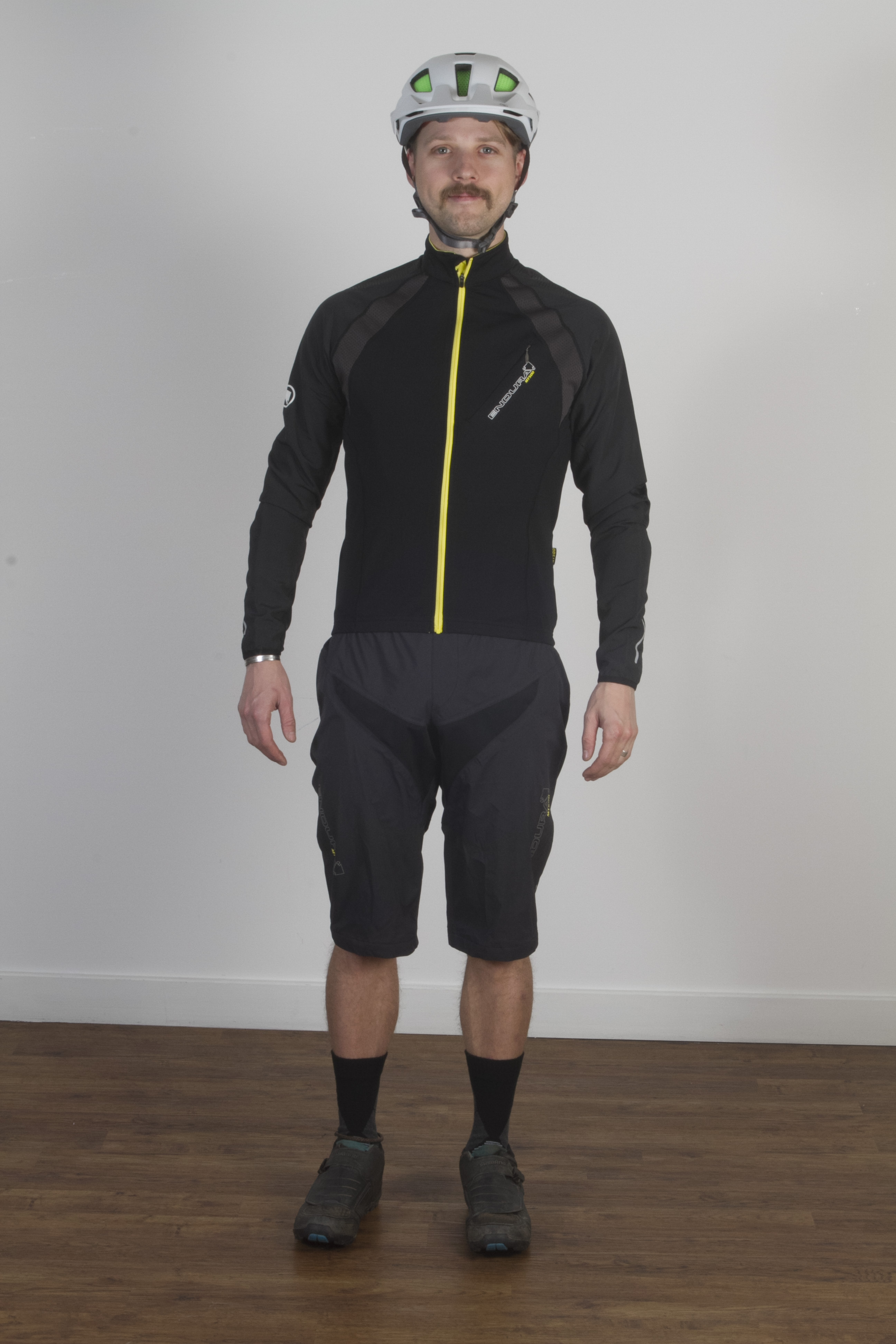In these situations, you can start showing a little more skin and riding gear can be tailored more towards fit and comfort than ultimate waterproofness. We’ve dressed Wil in some decent baggy shorts (MTR Baggy Short II: £82.99) and, just to be extra optimistic, a sleeveless base layer (Translite S/L Base layer: £22.99). The top, though, needs some element of windproofing to it, as well as some water resistance and the shorts need to have a decent amount of windproofing as well as a good DWR coating to shrug off spray (FS260-Pro Jetstream L/S Jersey: £84.99).