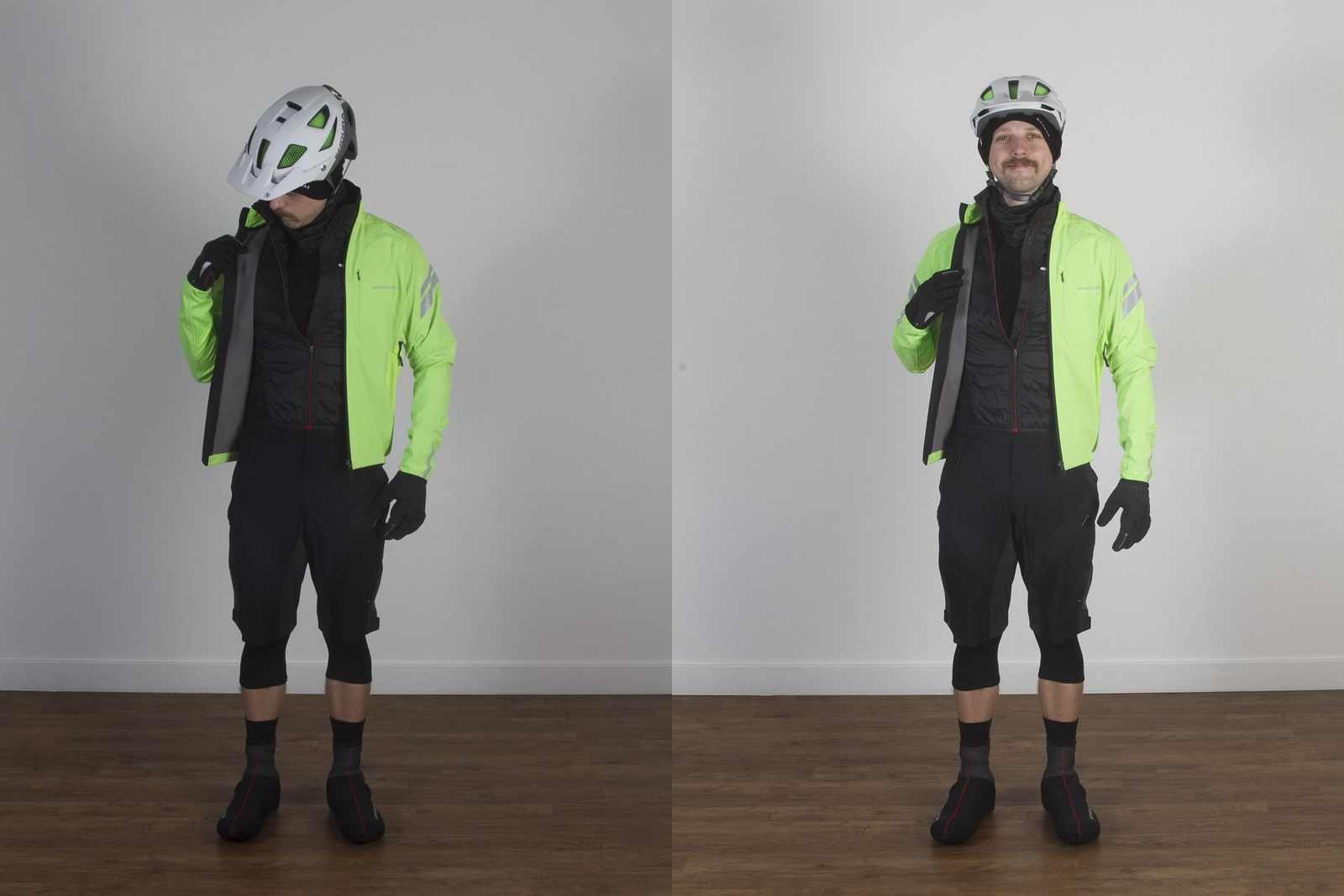 Likewise, leg length is a touchy subject in the winter. Some riders happily wear full length brushed-back, or ‘Roubaix’ winter tights and throw a baggy short over the top (Steve Peat is an advocate for example), but the fashionistas claim that you can’t wear baggies unless there’s some leg-skin showing, and insist on 3/4 shorts, or perhaps knee warmers (or even knee pads) to keep the legs warm, combined with long socks (Thermolite II Sock Twin pack: £27.99). This has the effect of showing an inch or so of purple skin to the elements, but hey, if that’s what your fashion-self tells you… We’d reckon that, as it’s winter and any riding is better than no riding, it’ll probably be dark, no one’s around, so who really cares as long as you’re out?