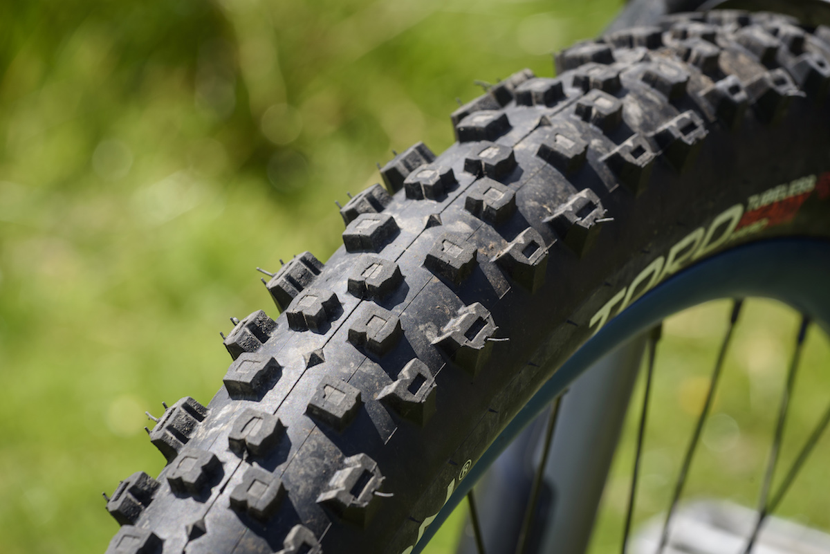 The Toros went up very easily tubeless on both Spank OOZY 345 and Mavic XA Pro Carbon wheels without needing a compressor and the nice beefy sidewalls didn’t leak a drop of sealant throughout the test. One thing that pleasantly surprised us was just how much rubber there was directly under the tread – reinforced sidewalls can take a lot of the limelight when it comes to preventing pinches and flats on tubeless tyres, leaving the area under the tread feeling a bit anaemic by comparison, but this wasn’t the case on the Toros.