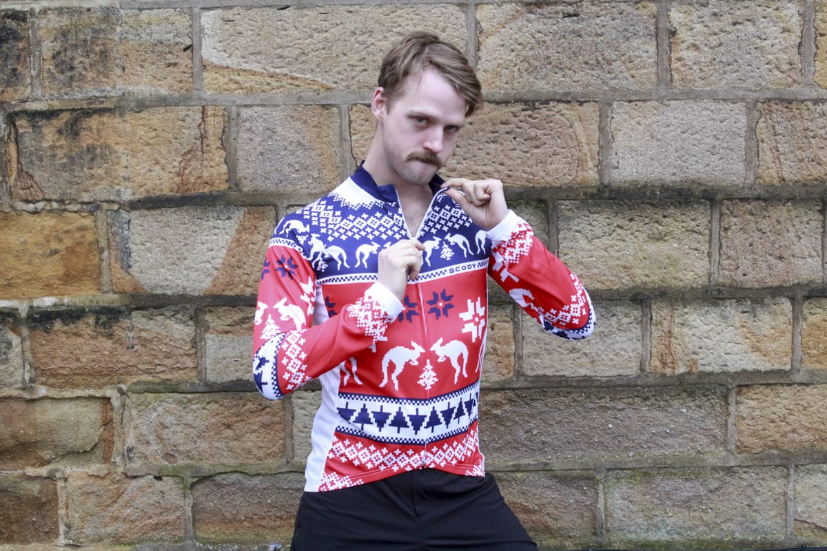 Having travelled all the way over from the other side of the planet, this dashing long-sleeve cycling jersey comes from Wil’s mate Craigo, who sent it over as a slightly early Xmas gift. This time of year is obviously a little warmer Down Under than it is in the Northern Hemisphere, which means those traditional Christmas wooly jumpers don’t enjoy quite the same popularity that they do here. To come up with the next best option, apparel company Scody partnered with the Cancer Council to launch the ‘Ugly Xmas Rashie’ – a long sleeve top designed for the beach, or in this case, with a full-length zip and a cycling specific cut for use on the bike. Wil might be wanting to wear a few more layers with this one though…