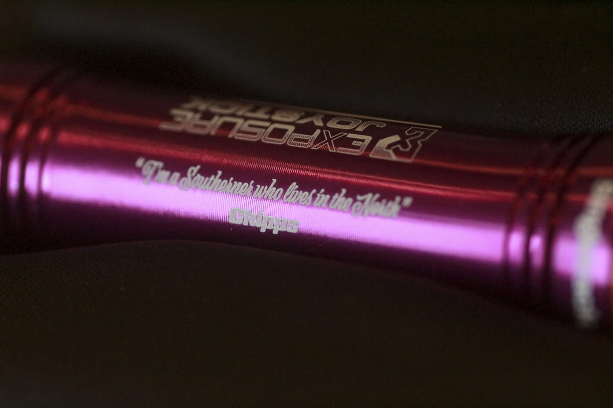 This is a special light. The light on the right is Chipps’ old Mk 1 Joystick, which he’s just had refurbished, so it still works. Since he was given it (complete with engraving) when he moved ‘Up North’ in 2001, that’s pretty impressive. Lucky for him, when he got it back, Exposure also sent him a matching new Mk 12 version, again with engraving. Perks of the job and all that.