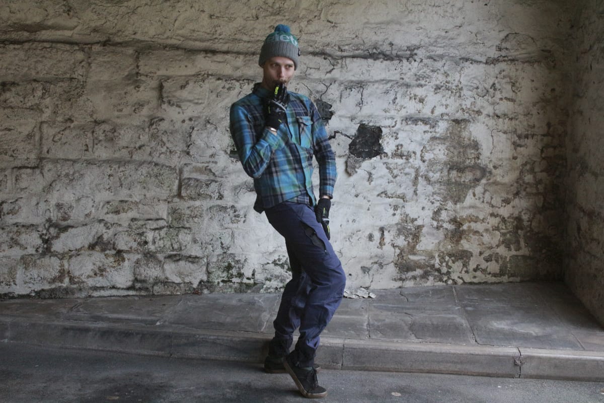 And here’s Wil in the men’s version. The ankles are nicely tapered to stop them flapping into your chain, and reinforced with slightly tougher fabric. The seat is also made of a tougher fabric to give extra strength, while the rest of the pants are made of a stretch fabric with DWR coating for fending off the splashes.
