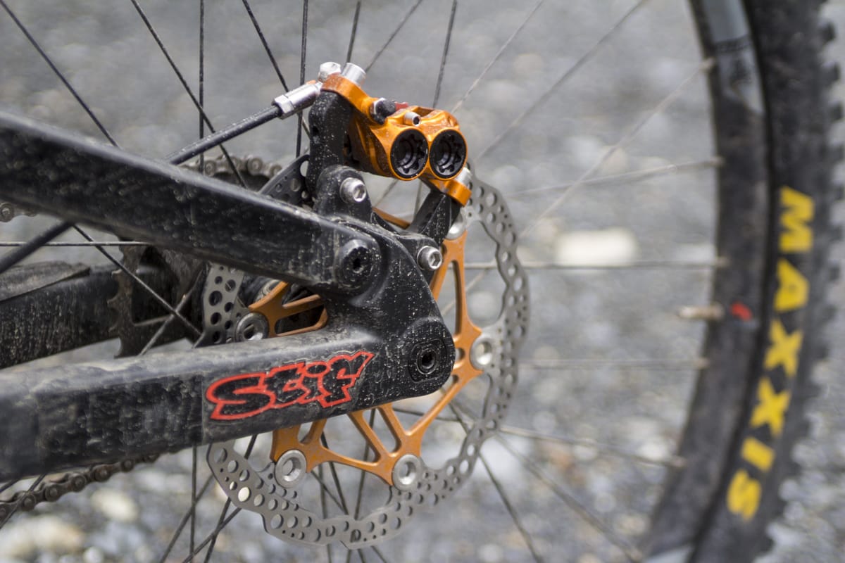 I rate lack of heat fade as high priority in brakes. I replaced the SRAM Guide R brakes that came with my bike with Hope Tech E4s because the fade on the SRAMs was appalling. I realise the two models are in different leagues, but I’ve run plenty of Hope brakes on previous bikes and never been disappointed with the engineering; their durability and serviceability is hard to beat.