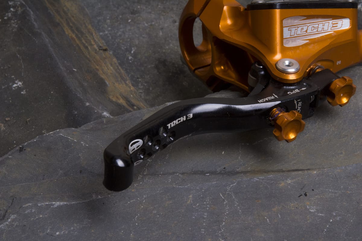 At the lever end, a split clamp allows for easy fitment, and we’ve found the Tech lever to play well with most shifters and dropper post levers. Hope offers direct mount brackets as an optional accessory for bolting a Shimano or SRAM shifter directly to the brake clamp.