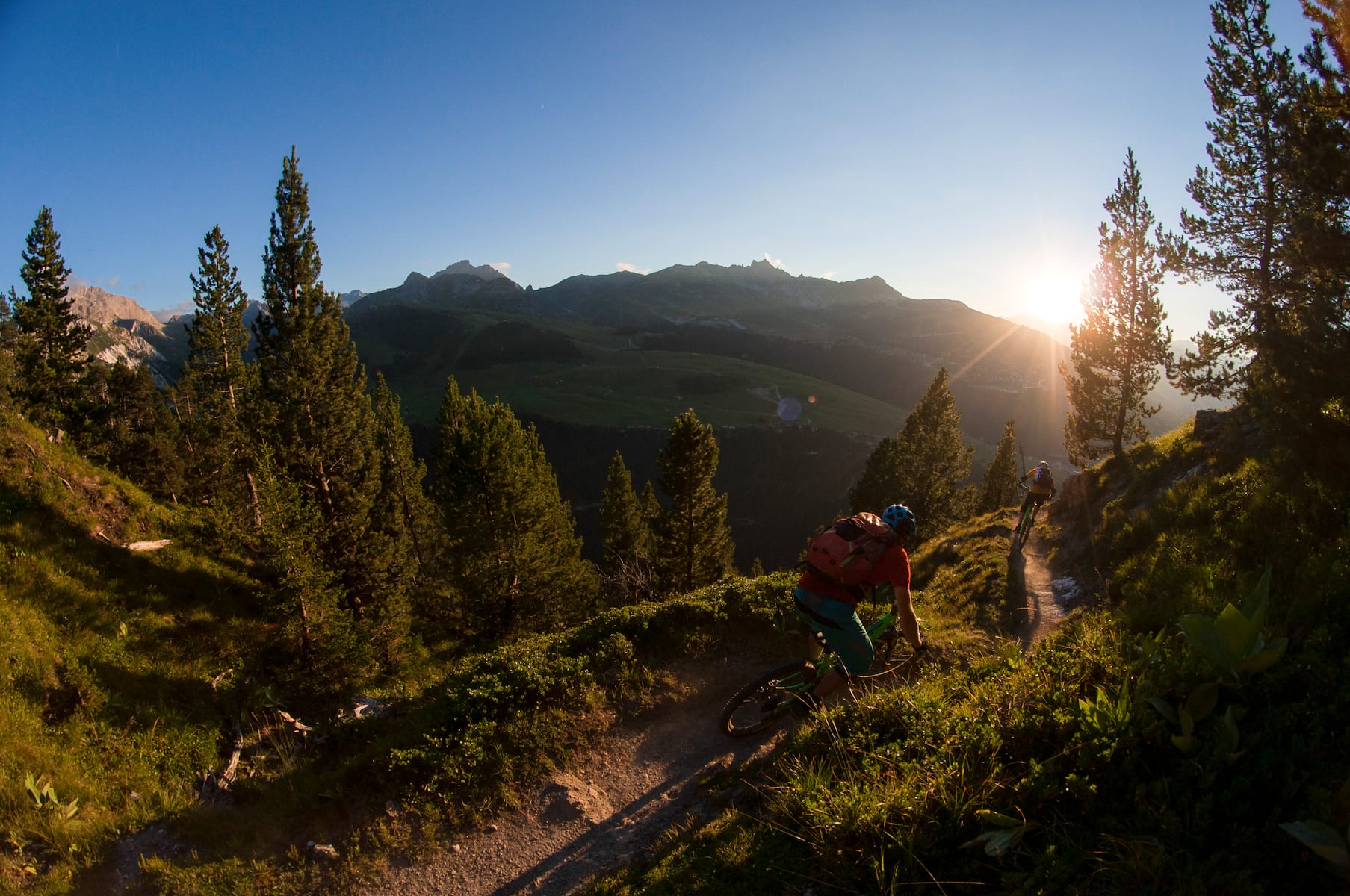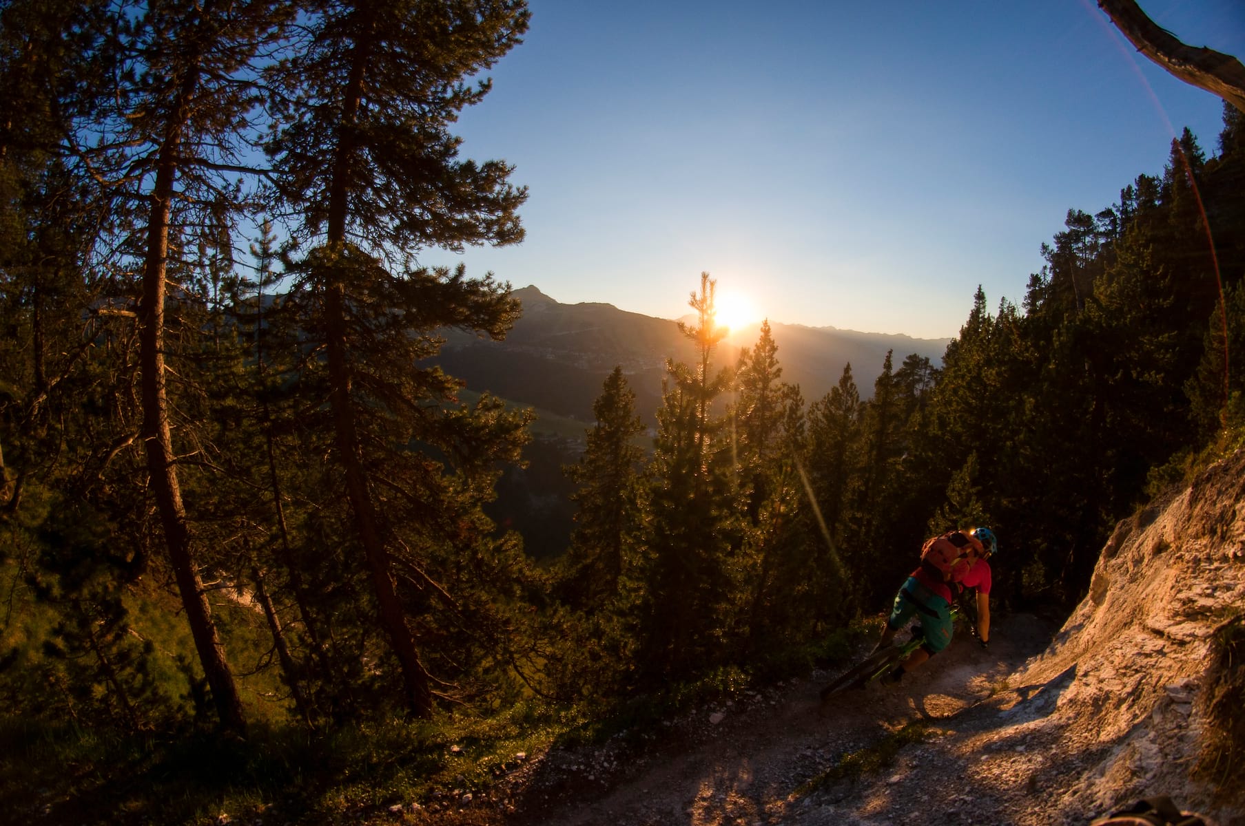 After what seemed like forever, a new challenge was thrown into the mix. While the squeaks of marmots can be tuned out after a few days in the Alps, tree limbs and roots cannot. As we approached the tree line, the trailside was guarded by pines, offering that little bit extra to the mix, as well as adding sharp needles to the sugary stone to make a rather unique dust. Thankfully, the roots were bone dry and hadn’t been polished smooth by the successive hammering of bike tyres.