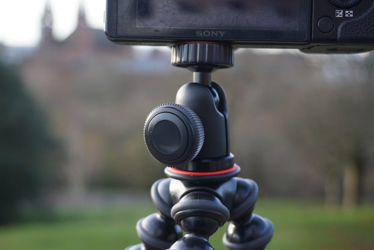 The GorillaPod 1K stand is, as the name suggests, suitable for cameras up to 1 kg in weight or if, like me, you come from the seventies, 2.2 pounds. Employing a threaded ballhead mount, the stand can be employed to pan through 360 degrees and tilt through 90 degrees. If you cannot find the perfect shooting angle with that range of adjustment, you’ll probably be in a minority of one. Being 26cm in length and weighing a shade under 200 grams, it falls into the category of light and easily portable.