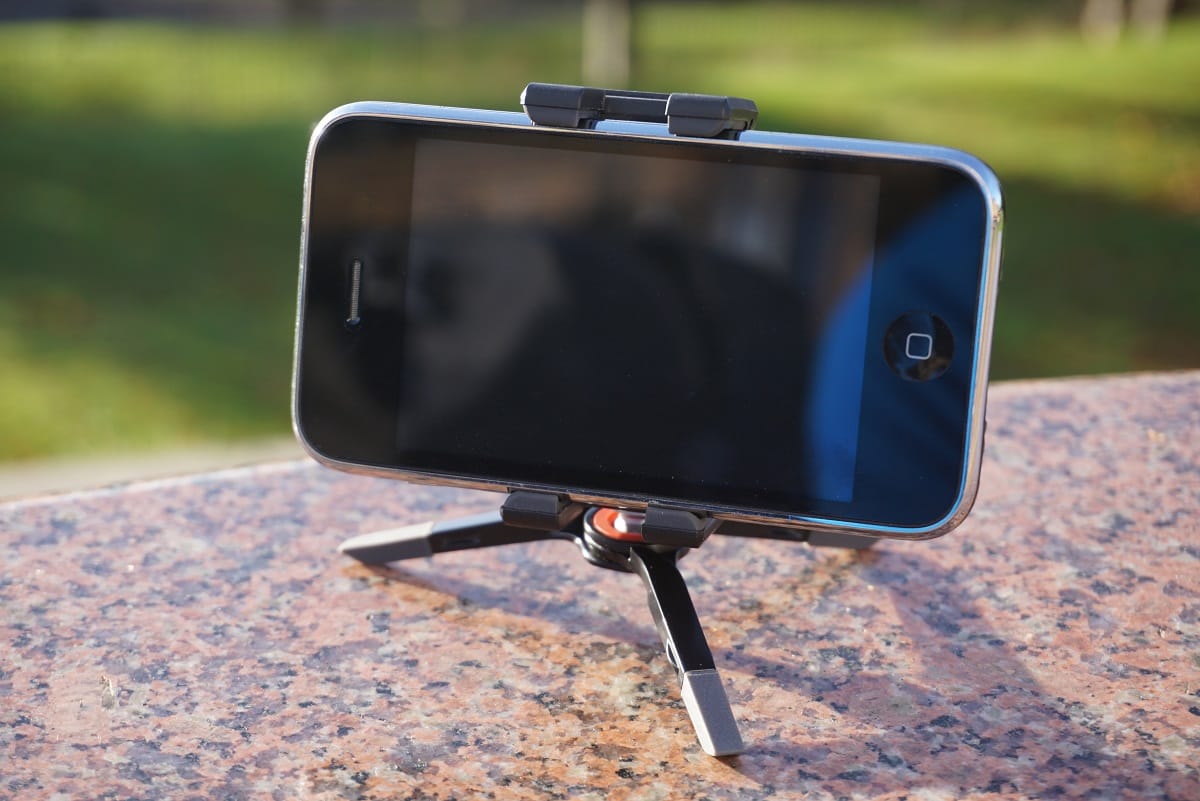 Like the Micro Stand, the Mobile Mini stand is designed as a free standing mount for you smart phone. However, what marks it out is the incorporation of the flexible GorillaPod legs which mean that you don’t need to have a flat surface to place it on for your screen to be level. The legs are designed such that each spherical section articulates through a wide range of movement. With rubberised ends and a band of the same high grip material round each section of each leg, the three legs can be manipulated to fit all manner of peculiarly shaped objects. Tree branches, a climbing frame, tent poles, even the edge of a table – the only limit of its applications is your ingenuity.