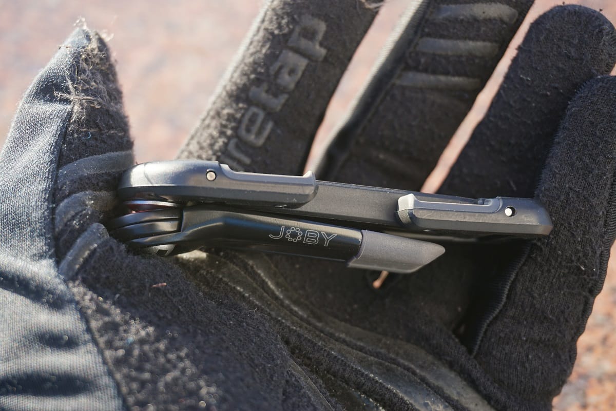 The JOBY Impulse (for those of you who grew up with Billy Connolly or who are Glaswegian, you will already be sniggering at that!) is almost the definition of miniaturisation. At a miniscule 10 grams, it’s not hard to imagine it finding its way into Q branch where it would no doubt vaporise Bond’s latest Spectre foe or perhaps just work his electric garage door. Press the button and it glows a strangely satisfying red. However, its real use is to act as a super small remote control for when you want to get your selfie jones on. Employing a mixture of sorcery and trickery (that would be a battery and Bluetooth connectivity – Ed), the Impulse enables you take create all manner of shots from group selfies through to triggering action shots from above where a self- timer just wouldn’t cut it. If you are in the mood for filming passing riding shots when out on the trails alone, you can activate your phone whenever you want. No more miss-timed clips of you riding in and out of shot.
