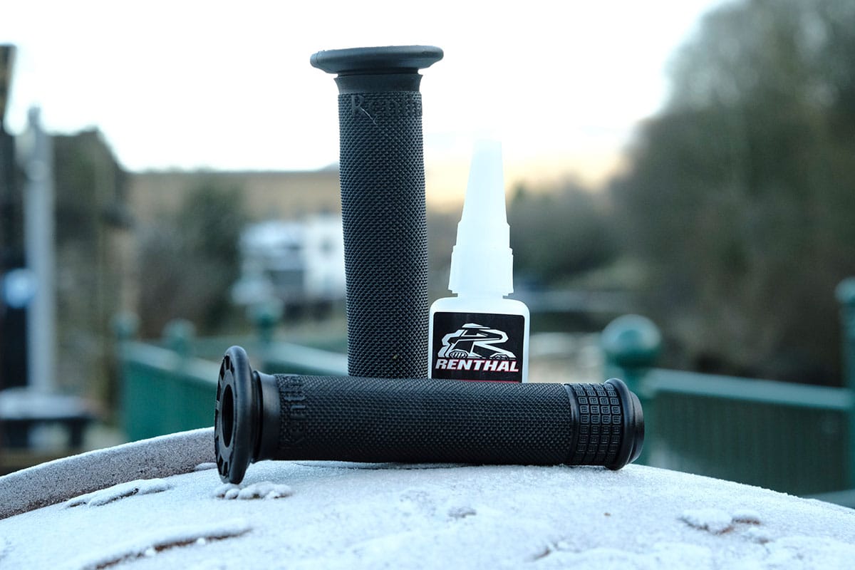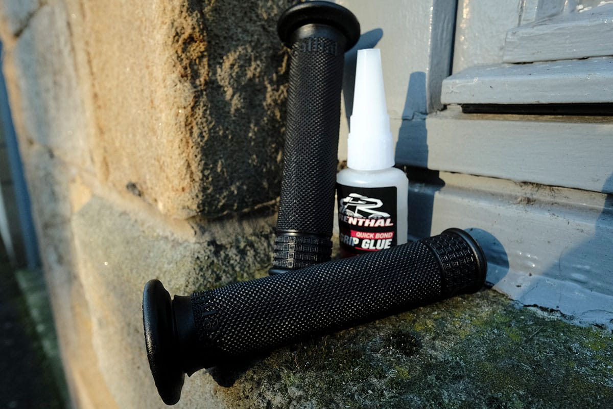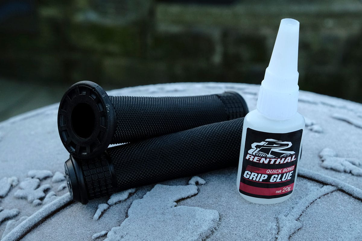 You’ll need Renthal’s Grip Glue for best results. £3.99 for a small tube. £7 for the rapid stuff.