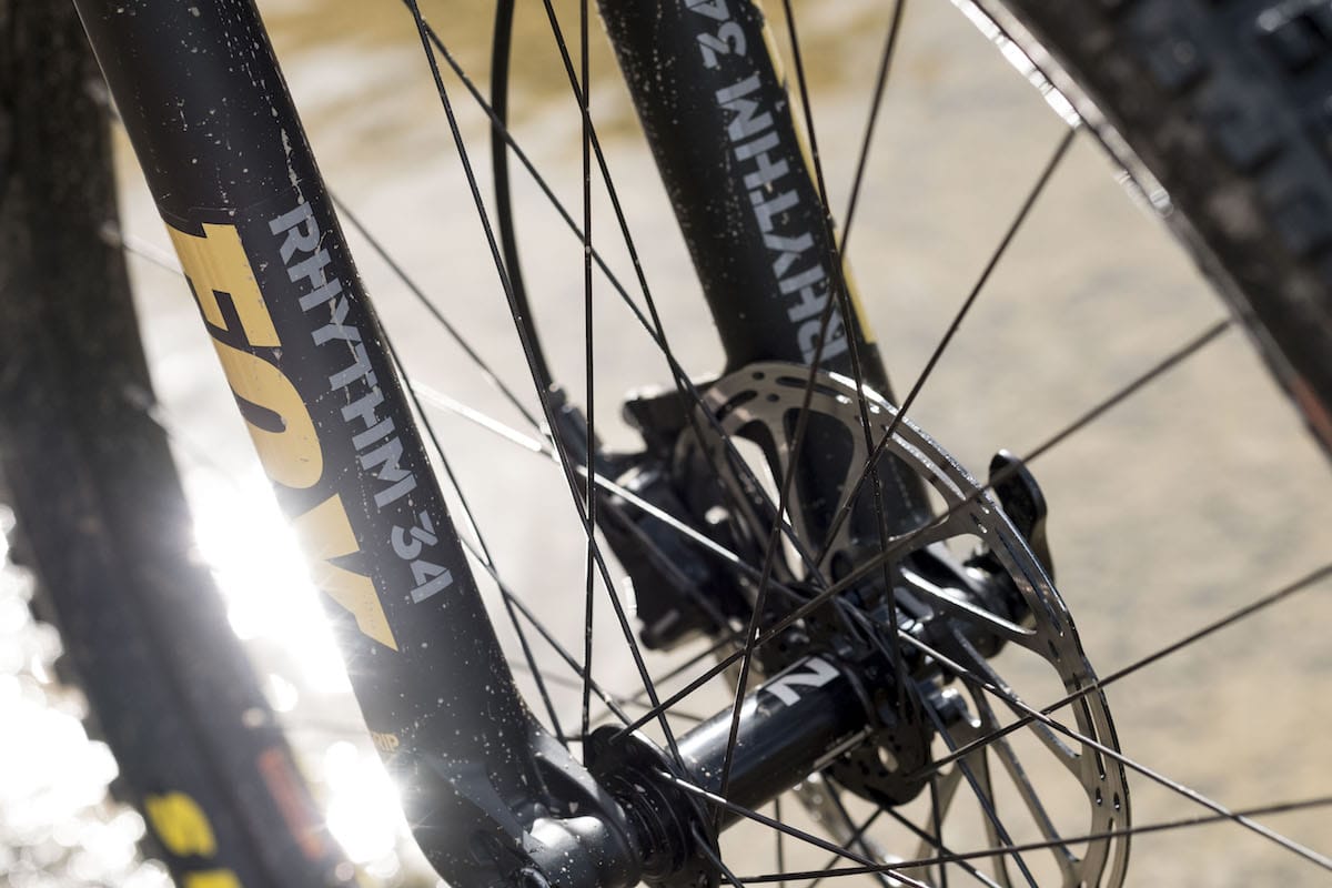 The Fox Rhythm 34 fork is (at the time of writing) an OEM model offered by Fox to offset the impressive market penetration of forks such as RockShox’s Yari. In a similar vein to its rival, it’s designed to achieve similar levels of performance at a lower price point, and it achieves this in spades. There are fewer adjustments available, the fork is made from cheaper raw materials and the internals are simpler, but for all that it feels as good and as stiff as other aftermarket (and, therefore, more pricey) Fox 34s I’ve ridden. It’s initially plush and well supported in the mid-stroke. Perhaps there’s a touch more spike on bigger hits when descending, but a very impressive fork nonetheless.