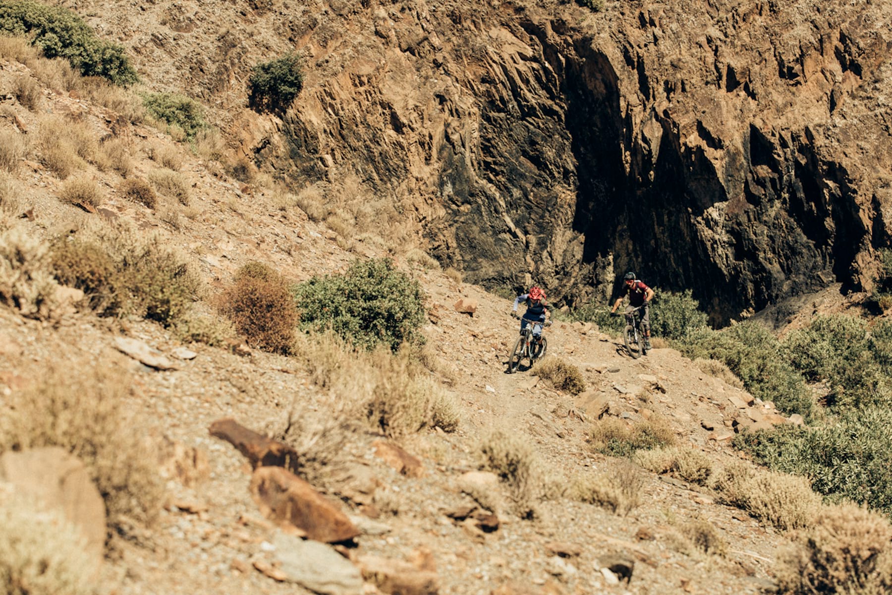 “You see that mountain over there?” he asked, while pointing far away from the plateau we are pedalling through. “Fabien Barel did some lines there while filming for the New World Disorder series.” Others might come to do the total opposite – to escape from the outside world in luxurious hotels in the middle of the Atlas Mountains, or even get together with local people to live and experience life from their side.