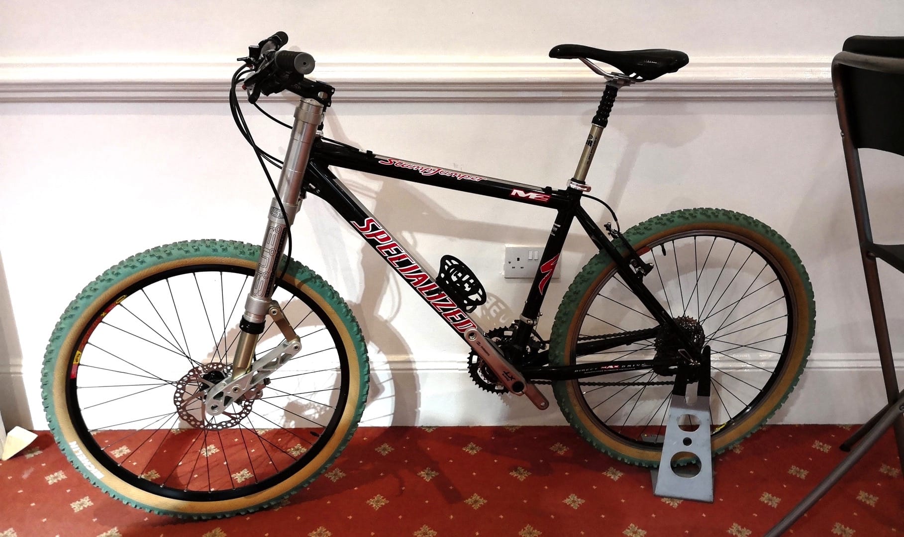 This Specialized Stumpjumper M2 was a black from the past. Not only is the bike itself suitably old skool but many of the parts brought back some great feeling from back in the day. Upfront is USE’s own linkage suspension fork, something which the brand would like to look at again sometime in the future, while the rear suspension is handled by one of USE’s original suspension seatposts. Oh, and anyone remember those Michelin Wildgripper tyres?