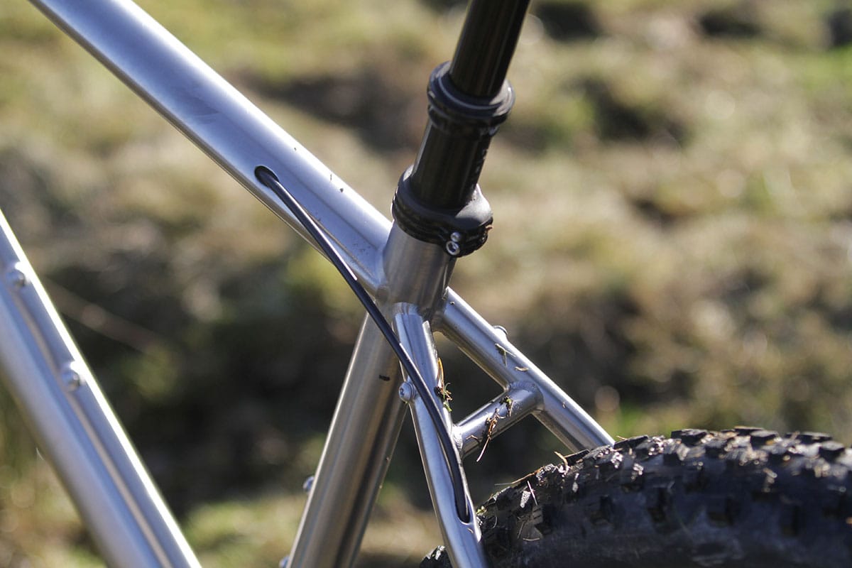 The frame is the big eye-catcher. That aerospace grade hydroformed titanium just oozes quality. And the more you look at it, the more each intimate detail jumps out and hits you – even little things like the bottle cage and rack bosses, or the ports for internal routing.
