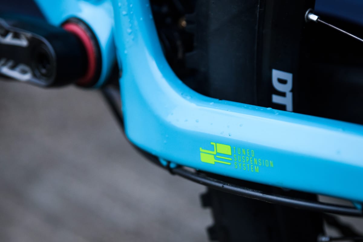 The rear end is an organic-looking one-piece carbon fibre structure. The solid rear triangle is locked down with a 148x12mm thru-bolt that sits flush in the frame. Two short alloy links join the swingarm to the mainframe, which Intense refers to as the JS Tuned suspension design. The counter-rotating links are an evolution of VPP (a patented suspension design that Intense used to licence from Santa Cruz up until the patent expired in 2015), and promise a balance between pedalling efficiency and smooth bump-swallowing goodness.