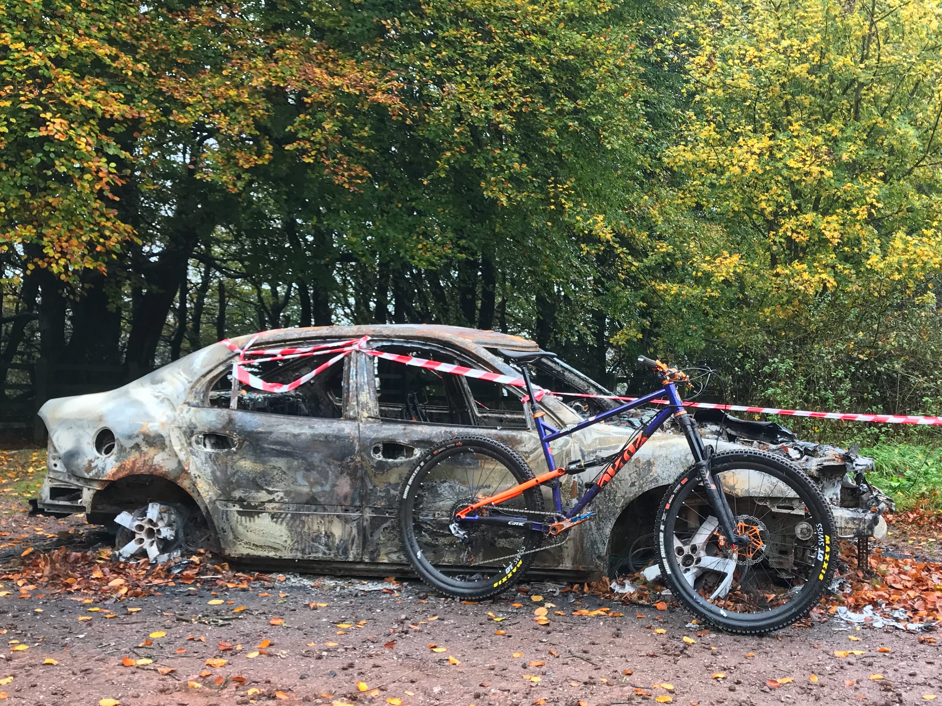 My choice of tyre was the excellent Maxxis High Roller II, 3C/TR/DD, 2.3in width. The 30mm rim profile created a great square edge to the tyre profile, and was noticeable when really leaning the bike over (said bike is an XL 29er and requires a fair bit o’ lean to see its way safely around many a corner). I’ll come back to this a little more later.