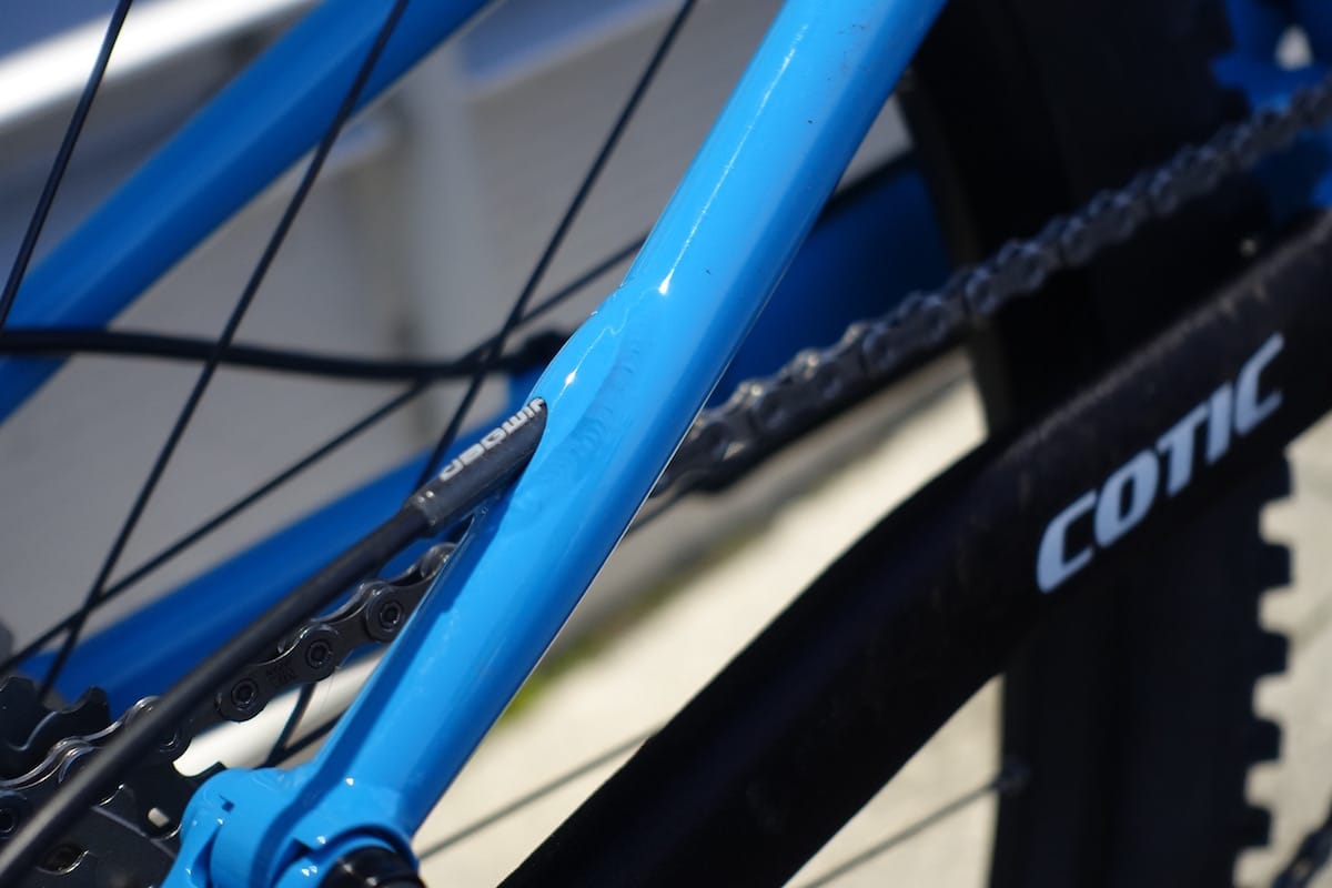 The fundamentals of the Rocket are still there; there’s a Reynolds 853 mainframe with huge diameter steel tubes, steel seatstays, and a beefy alloy chainstay. The Droplink suspension platform also remains, but just like the new 2018 FlareMAX that Cotic released earlier this month, the new Rocket adopts several improvements with a new alloy swing link, bigger and wider pivot assemblies, and a captured nut on the rear seatstay pivot.