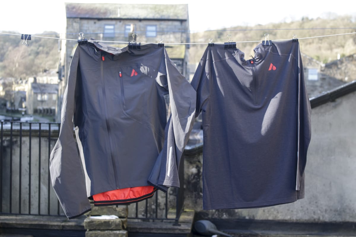 The shell jacket is waterproof and breathable with a mesh lining and waterproof zips. The front zip is offset, with zipped chest pocket, and tail gripper to stop the jacket riding up. The running jersey is 11% merino wool, for warmth and stink properties, the half zip has a ‘garage’ to protect your chin, and there are reflective strips on the shoulders.