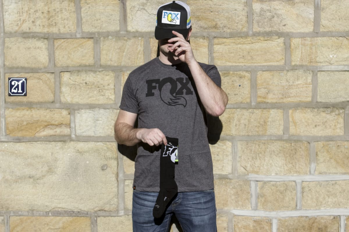 Since Silverfish is the new distributor of Fox suspension products, we’ve got a collection of promotional clothing. It’s a pretty cool cap, but perhaps not so much on Ross, and especially not on Hannah.