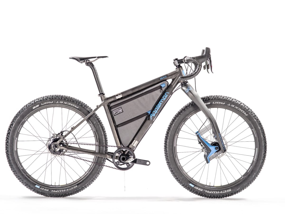 The not so excitingly named FR-213 is a carbon fibre bikepacking fat bike with a Lauf fork, Rohloff hub and belt drive. Only a pro climber could squeeze any tighter into a niche.