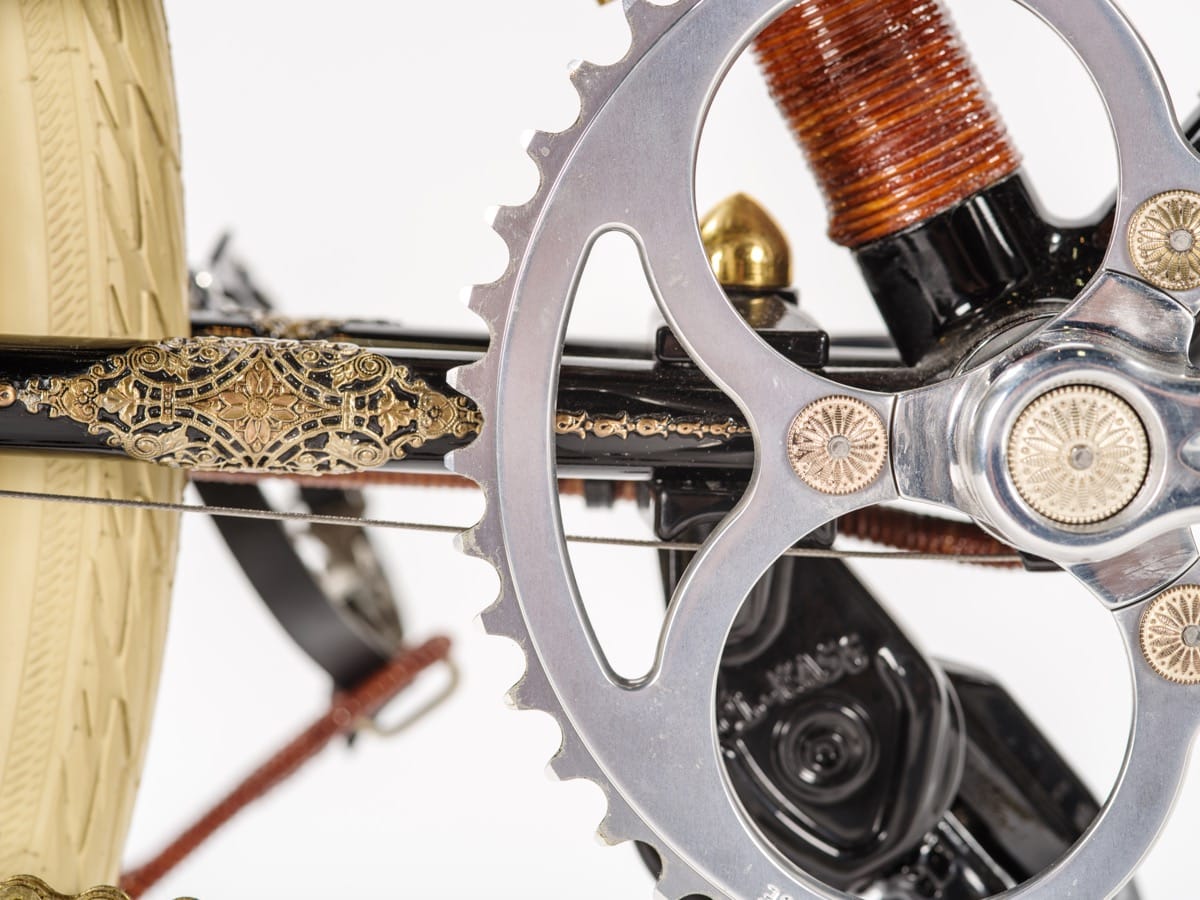 This has absolutely no business being on the pages of this site, except that it’s so bonkers that surely only Chipps could pull off the outfit needed to ride this thing. No suspension, no knobbly tyres, but lots of leather string.