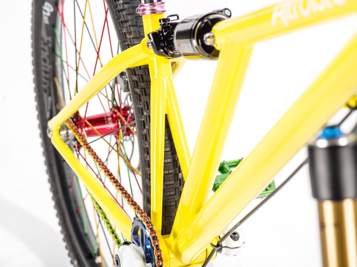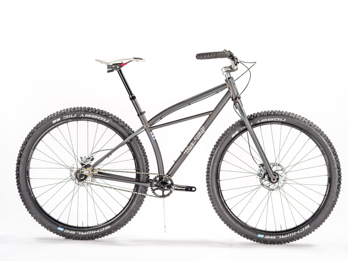 Singlespeed, backswept bars, rigid fork, dropper post…it’s almost a normal mountain bike. It’s also made by Black Sheep Bikes.