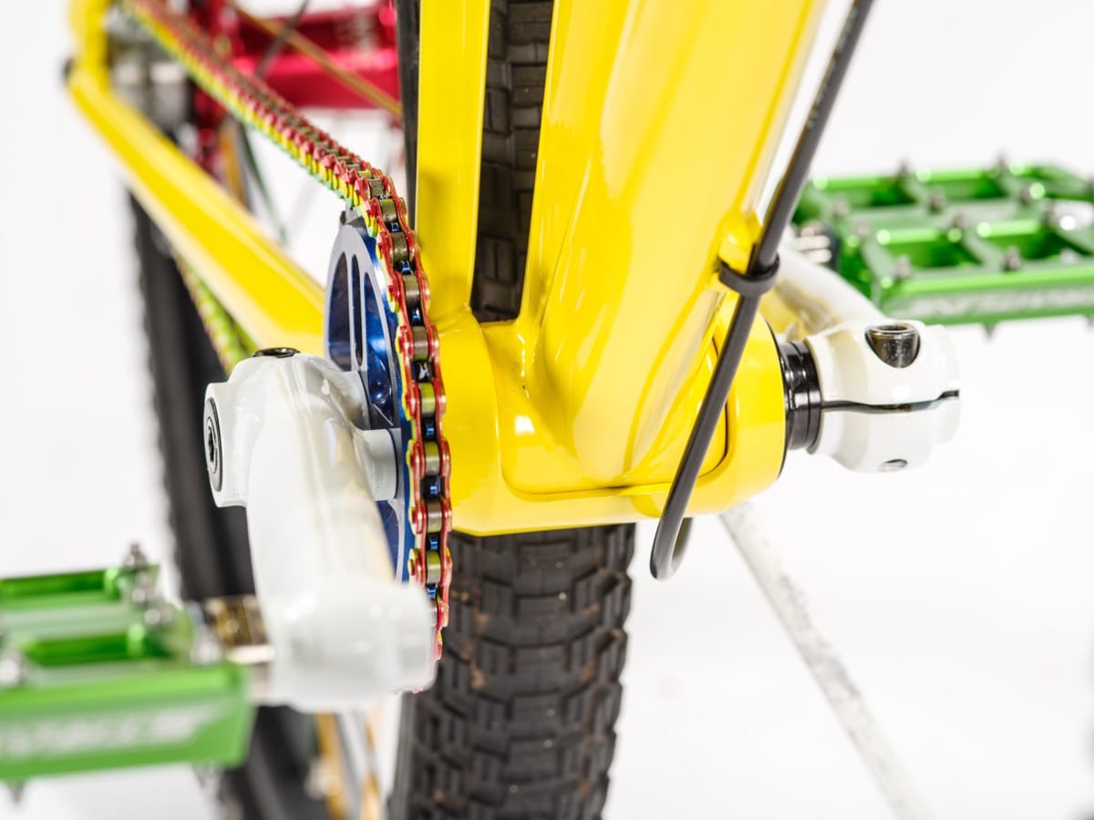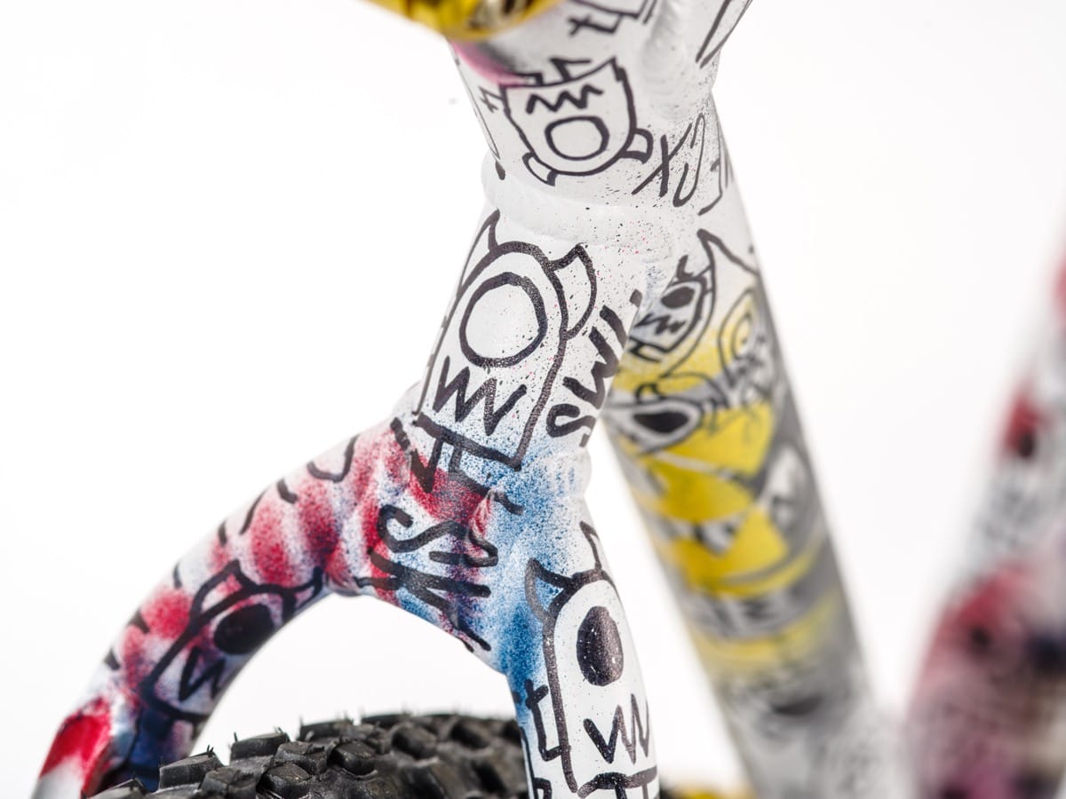 This is a bit of mystery bike. It’s in the press pack, and it’s tagged as being by Altruiste bikes, but beyond that we can’t see any information about it. A bit of digging around the Altrusite Facebook page reveals it’s the ‘Zydeco slope rig’. We think that means it’s for doing tricks on and getting air and possible ‘steezey’.