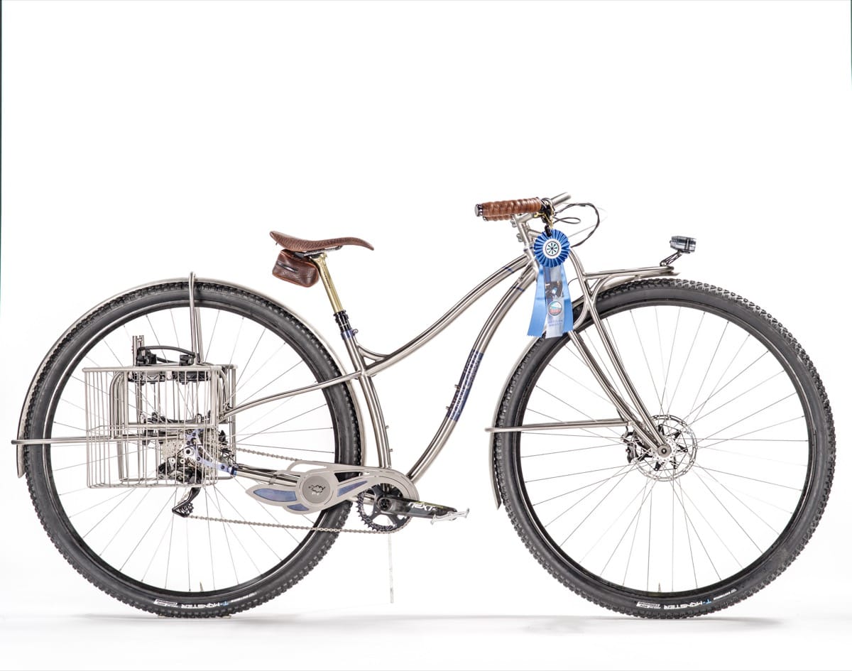 Is this a mountain bike? It has a dropper post. And appears to have the capacity to carry stuff – maybe a live raccoon? And then there’s the wheels…which are apparently 36in wheels. <mutters darkly about new standards> This creation by Black Sheep Bikes won the ‘Best Artisan Bike’. So maybe that rear rack is for sourdough and beard oils.