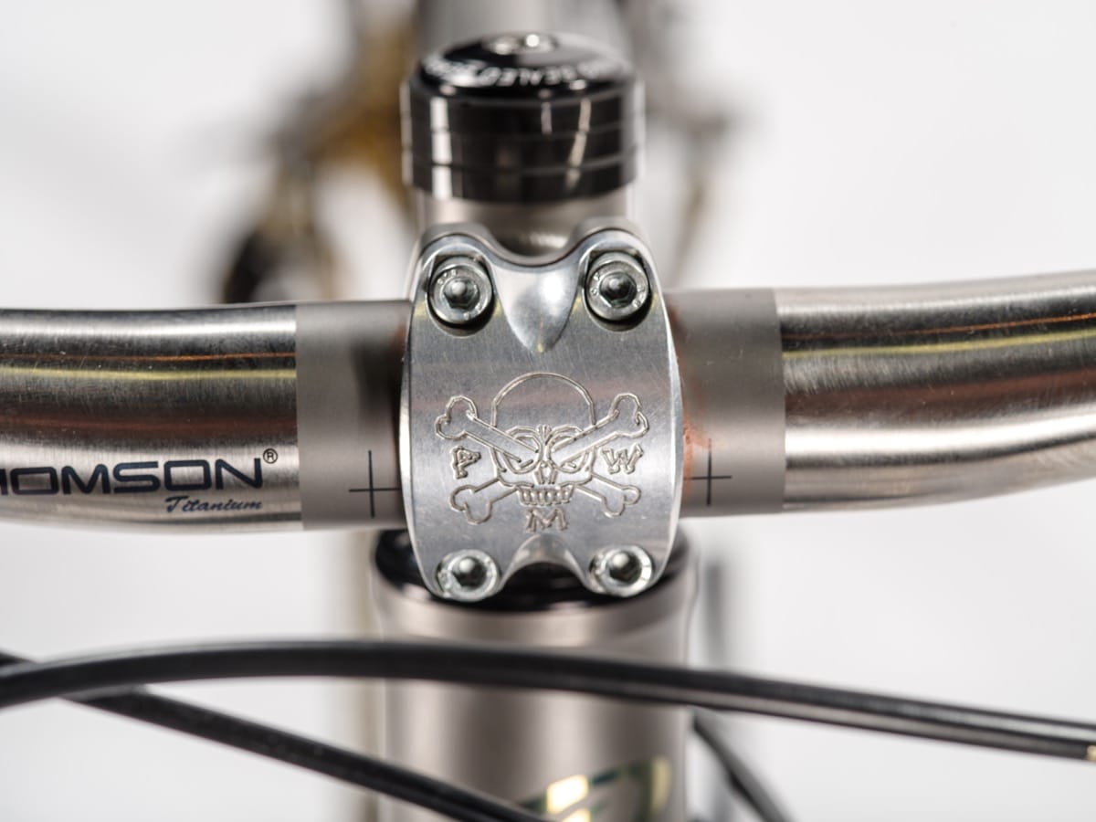 This is…basically a pretty normal looking bike – but made for a tall rider, so actually a cunningly designed bike to keep everything look in proportion. Kitted out by Northern Frameworks with some rather nice looking Paul Components, er, components.