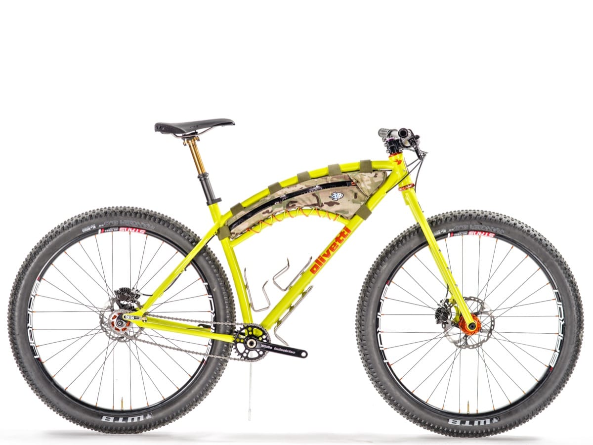 Is it a mountain bike? Possibly, one of the bike packing variety maybe? There’s certainly room for plenty of water for a desert crossing, plus space for a pizza.