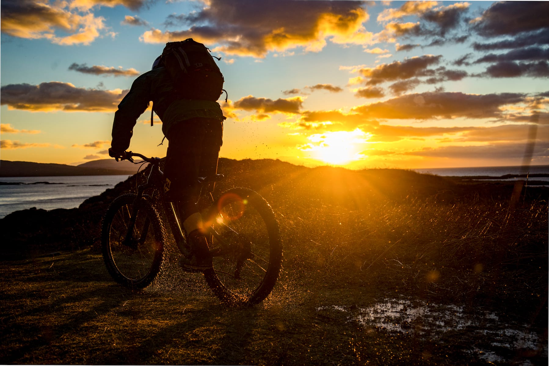Forward momentum slows once more as we approach the cliff edge again, all the while careful not to catch pedal or feet on the heather or rocks beneath us. A fall here would be big yellow helicopter territory. Things are made harder by the sun, now starting to march towards the horizon, the contrast between dark and light playing havoc with our eyes, but, my word, the view is something else. We’ll take what we can get though, as the sky is still clear with just enough cloud to make things even more stunning.