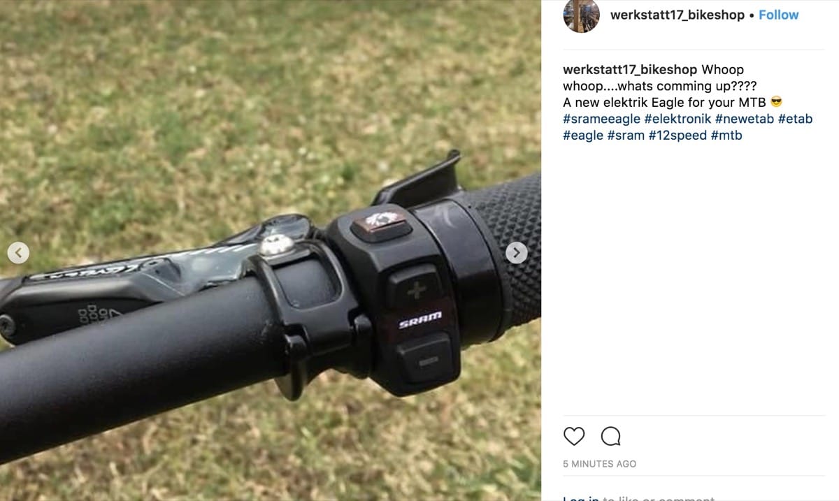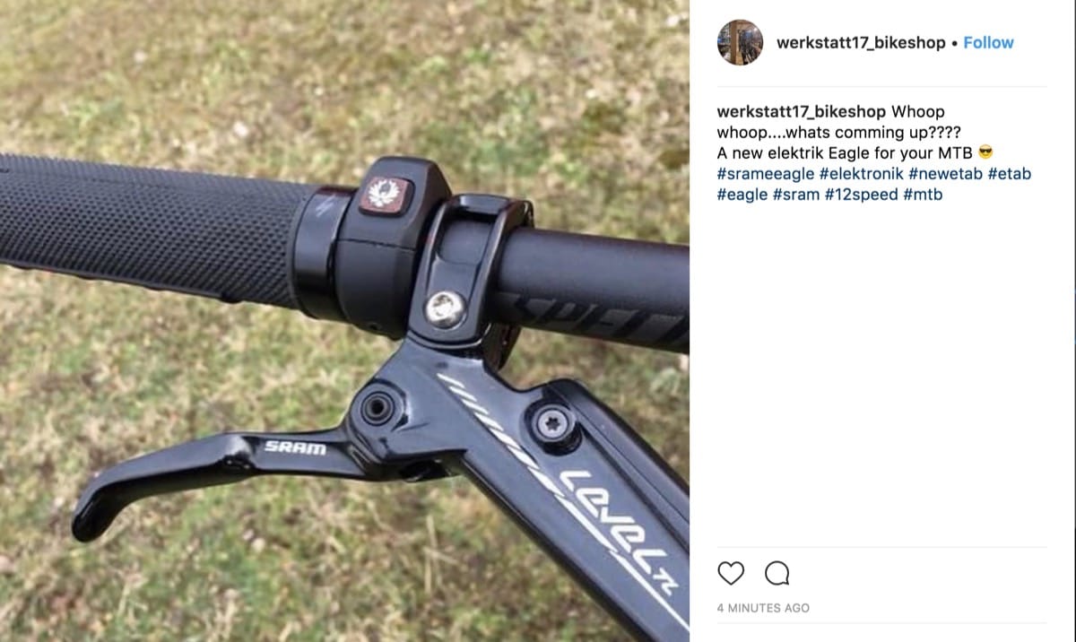 Now firstly, this looks pretty much identical to the button used on Specialied’s Turbo Levo e-MTB that is designed to change between power modes. So it’s highly likely that we’ve all been trolled on this one by werkstatt17_bikeshop thanks to the addition of a SRAM sticker and an Eagle logo. Golf claps my friend.