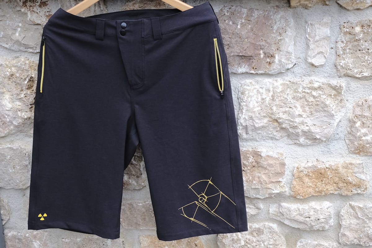 There are some more technical and fuller featured downhill/enduro racing shorts and we love one of the little features. There’s a clip-on goggle pouch for putting your goggles in between runs or on transition stages. The designers found that the goggles swung around too much for comfort and so there’s a little pop-stud on the short leg for popping the bottom of the pouch to so it doesn’t swing. Clever!