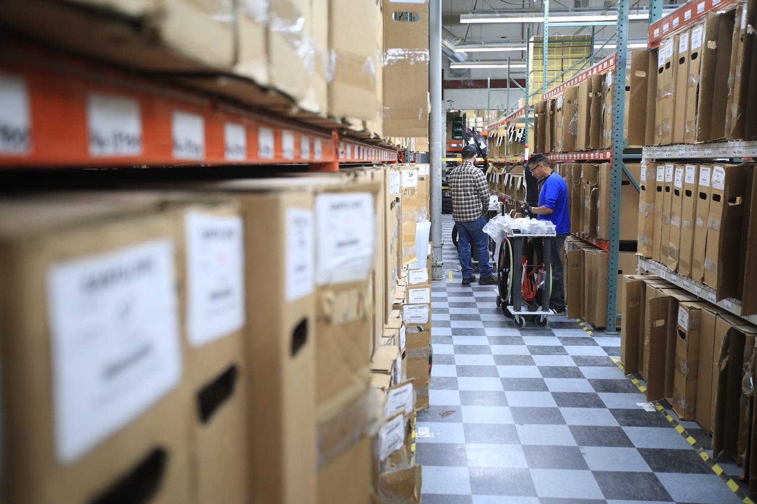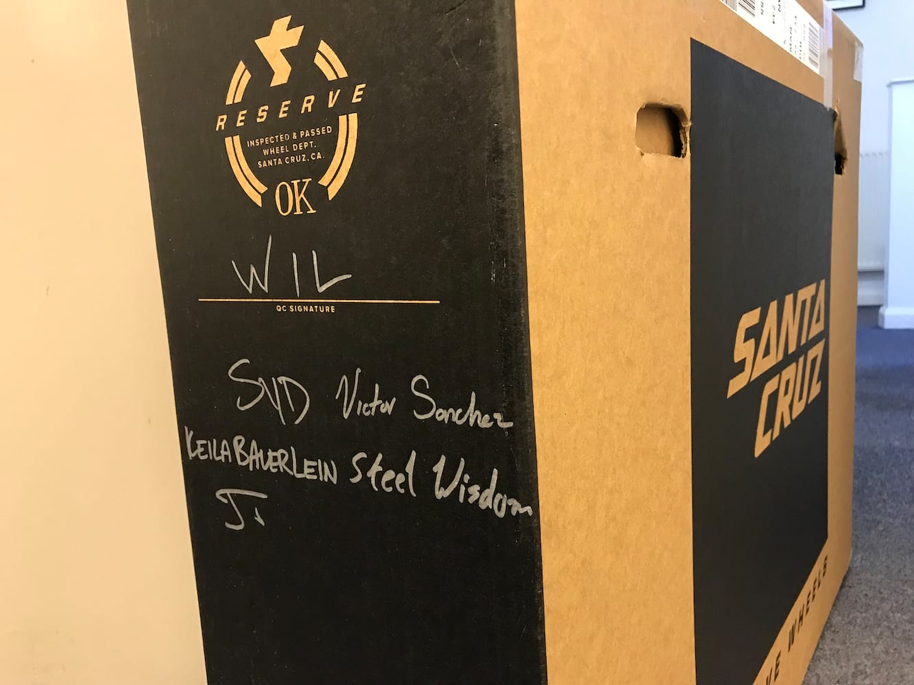 In addition to bike assembly, Santa Cruz also builds its own wheels in-house, which fewer people are aware of. Boxes filled with rims, spokes, nipples and hubs arrive at the factory loading dock via huge semi-trailers, and then the components are racked up and prepped to be turned into complete wheels that’ll either be sold with a bike, or on their own aftermarket.