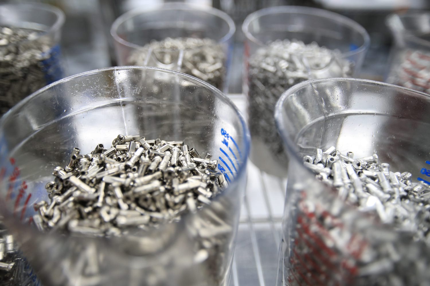 From there, a loaded hub is connected to its rim. This happens on a BMD semi-automated lacing machine. Santa Cruz owns three of these machines, which are valued at around $30k USD a piece. They’re named Lance, Lacey and Eva.