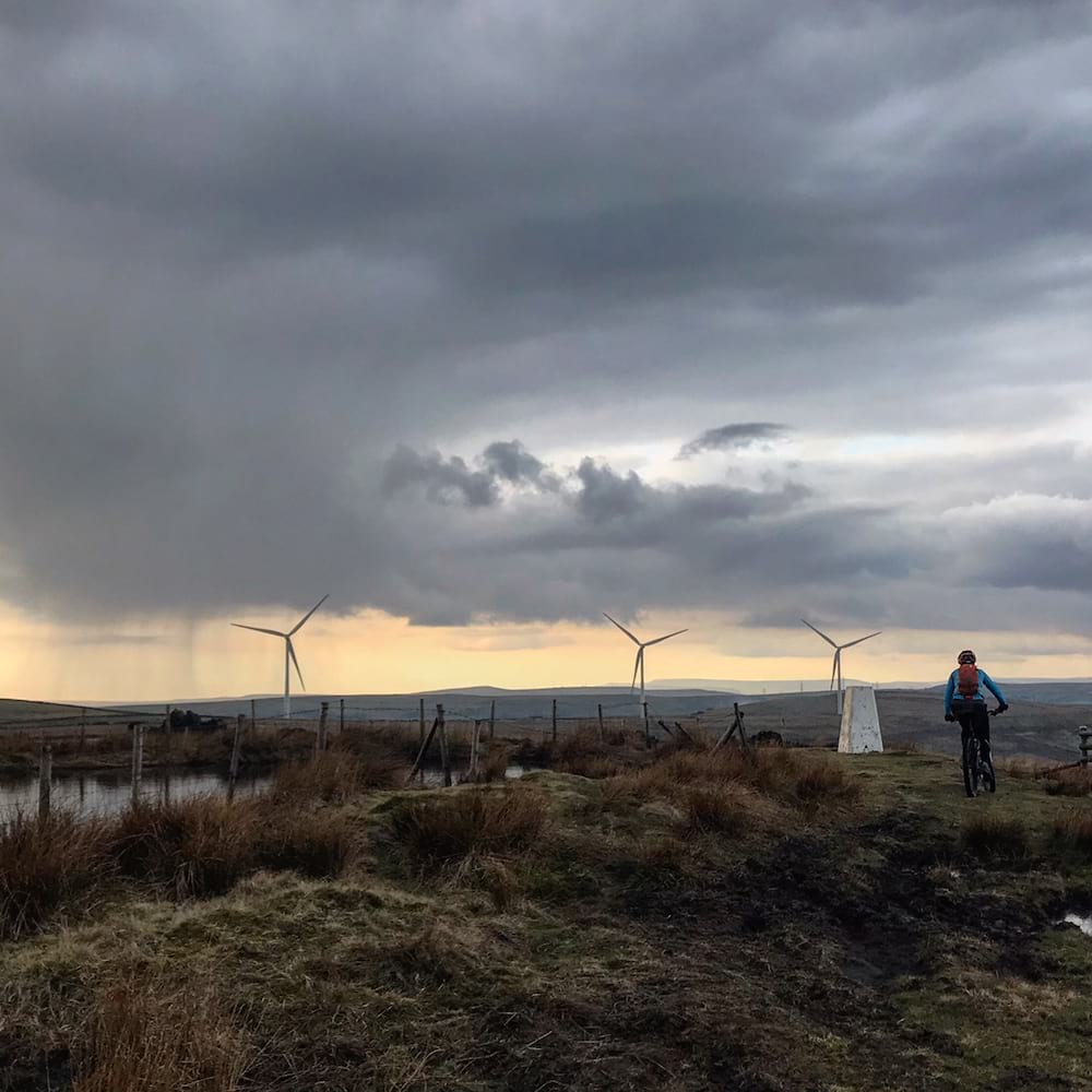 Dramatic skies even meant that a quick nip up the back of the hill to touch the trig point was met with sun, sheeting rain and spinning windmills. It’s funny how we’ll settle for ‘not raining’ in lieu of spring…