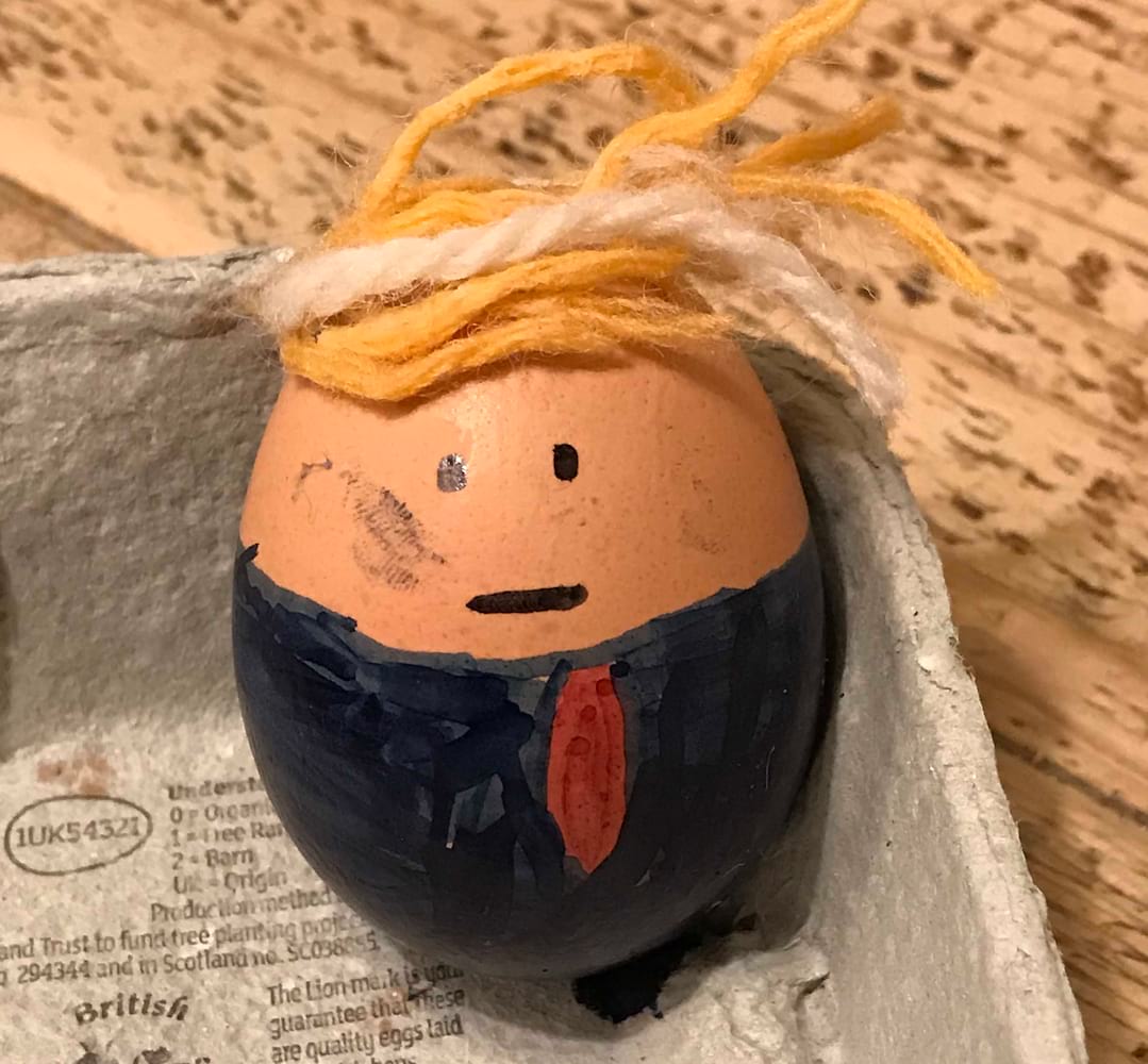 * Well, not everyone. Some people like Hannah have had to go to a 50th wedding anniversary… However, we’re amused that her son’s ‘making a decorated Easter egg’ attempt looks rather like a certain American president…