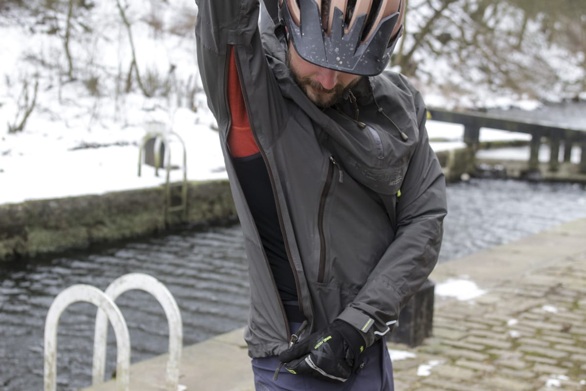To keep everything watertight, Endura has sealed each seam internally, and all of the pockets and vents are guarded by chunky waterproof zippers. The fabric itself is medium-weight and feels a little crispy to the touch. It’s definitely not jersey-pocket packable, but it won’t take up a heap of room inside your backpack.