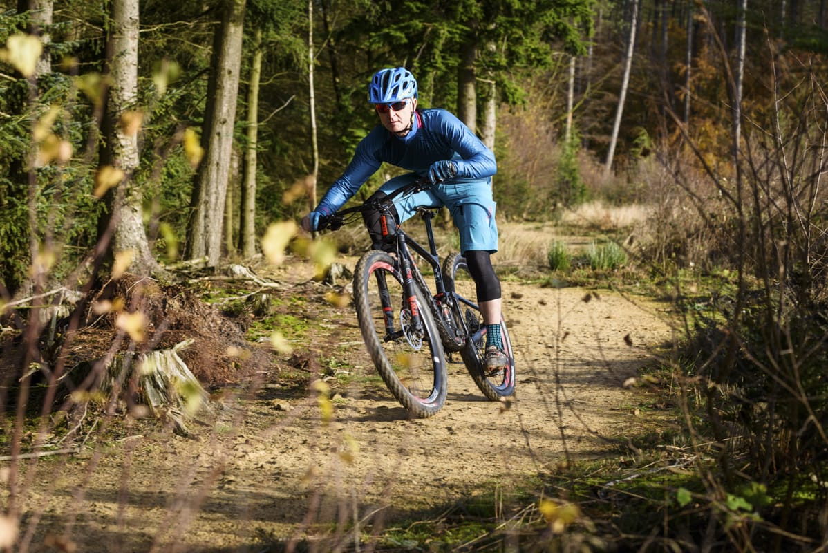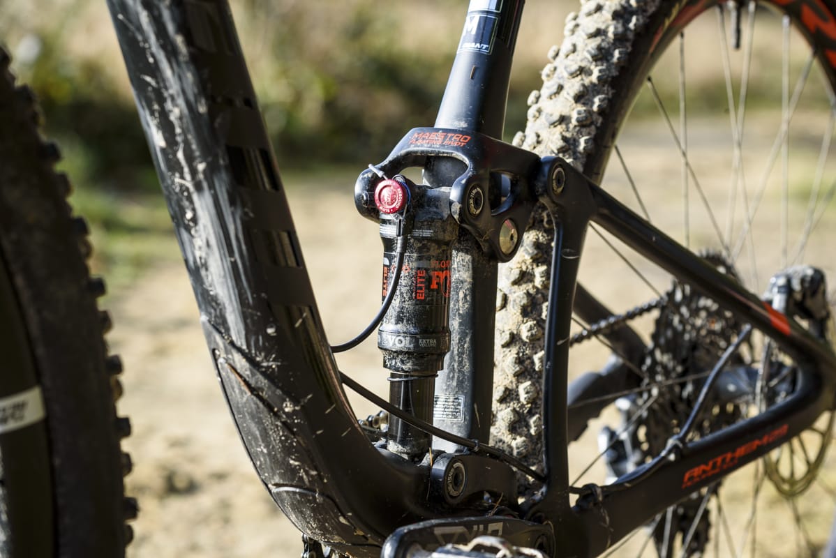 The lightweight frame (1983g with shock) isn’t bone-shakingly stiff, with a more springy feel front to back than the other two bikes. That isn’t necessarily a bad thing though. On rough trails, it provides welcome compliance and a little less brutalism when being pummelled around on rock-laden singletrack. A frame that’s too stiff can be unrelenting and difficult to control, but the Anthem feels calm and comfortable. Even while seated and with the suspension locked out, that slender 27.2mm carbon seatpost does well to dissipate buzz.
