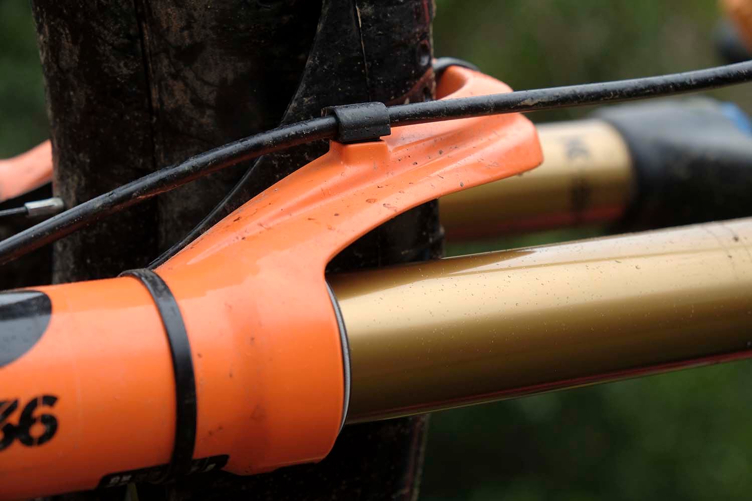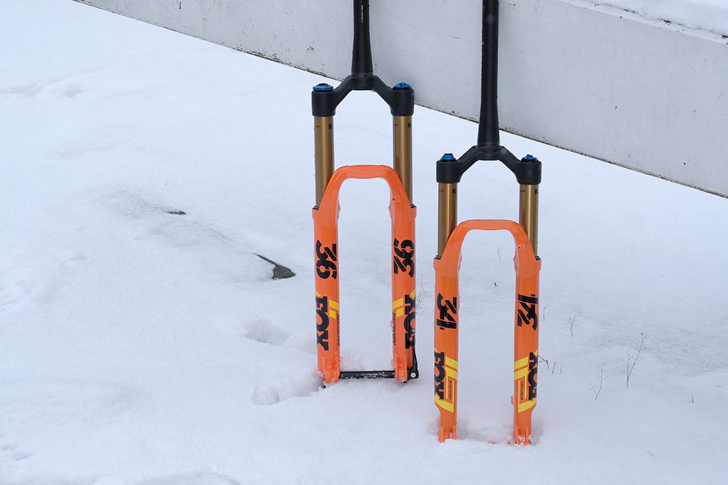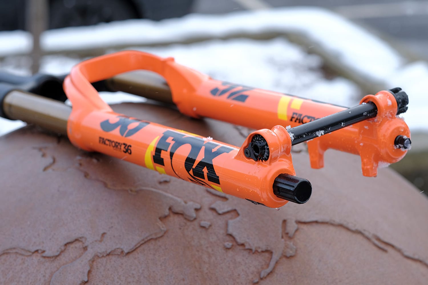 You see, for the past month I’ve been under strict orders not to post photos of this bright orange Fox Factory 36. Because even though it looks like the current 2018 model that we reviewed earlier this year, this fork is actually from the future! 2019 to be exact.