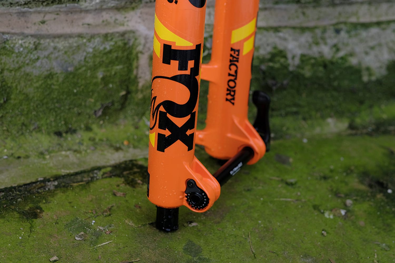 Once you’ve installed the bright orange beauty into your bike, the first thing to set is the sag. So you’re not left thumbing through the entire 36 user guide, Fox has printed air pressure suggestions on the back side of the left fork leg. With 160mm of travel, I decided to go for 30% sag.