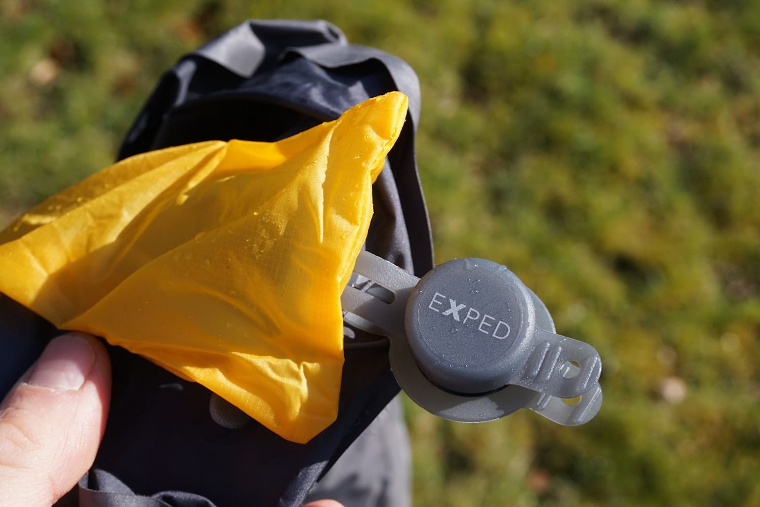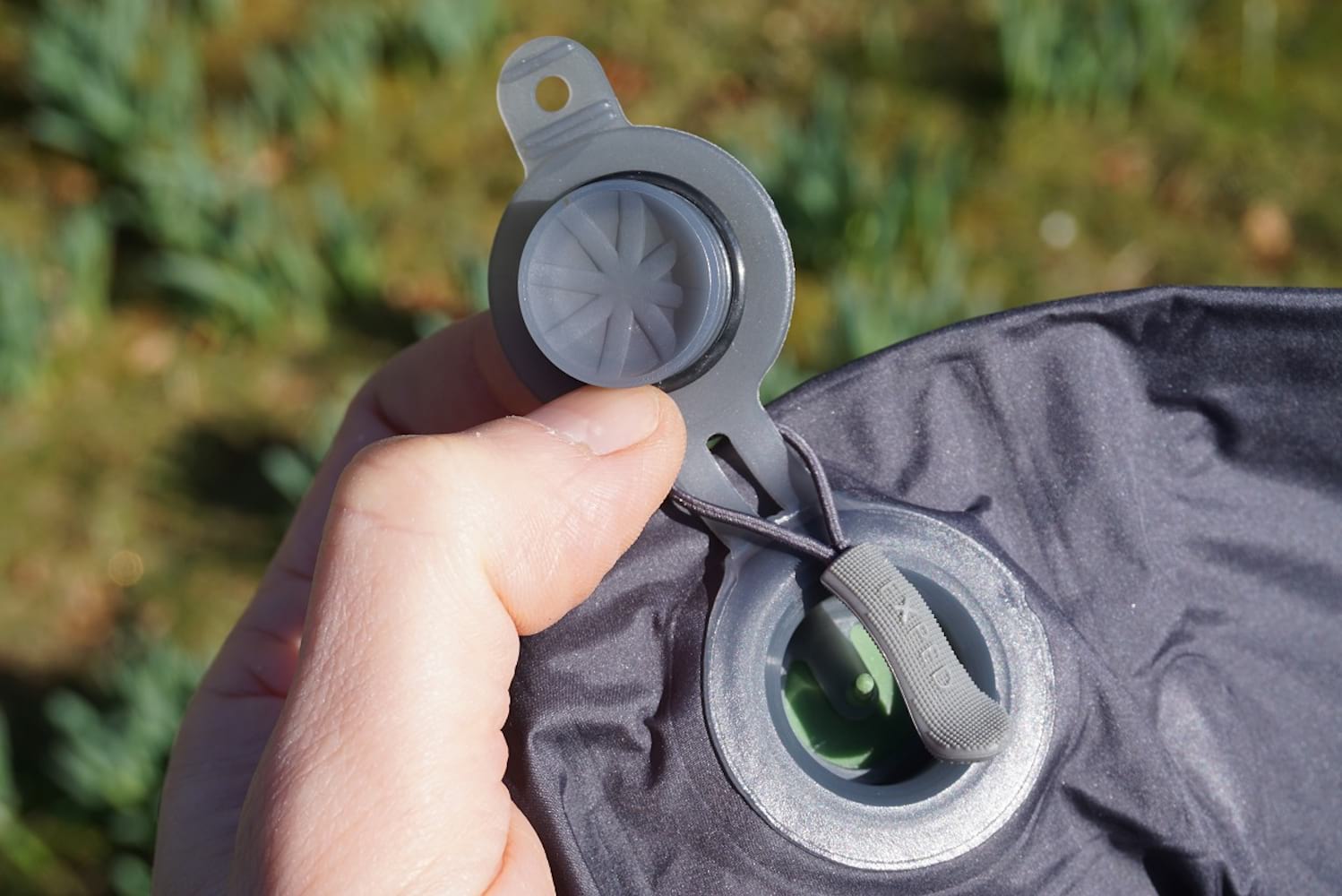 So now the important bit. What’s it like to use? First and foremost, Exped supply the mat with what they call the Schnozzel bag. This is basically a dry bag with an adaptor plug inset at the base. By plugging this into the one way valve at the top of the mat, by moving the bag to capture air and then sealing the end, the bag is squeezed down and the mat is filled.