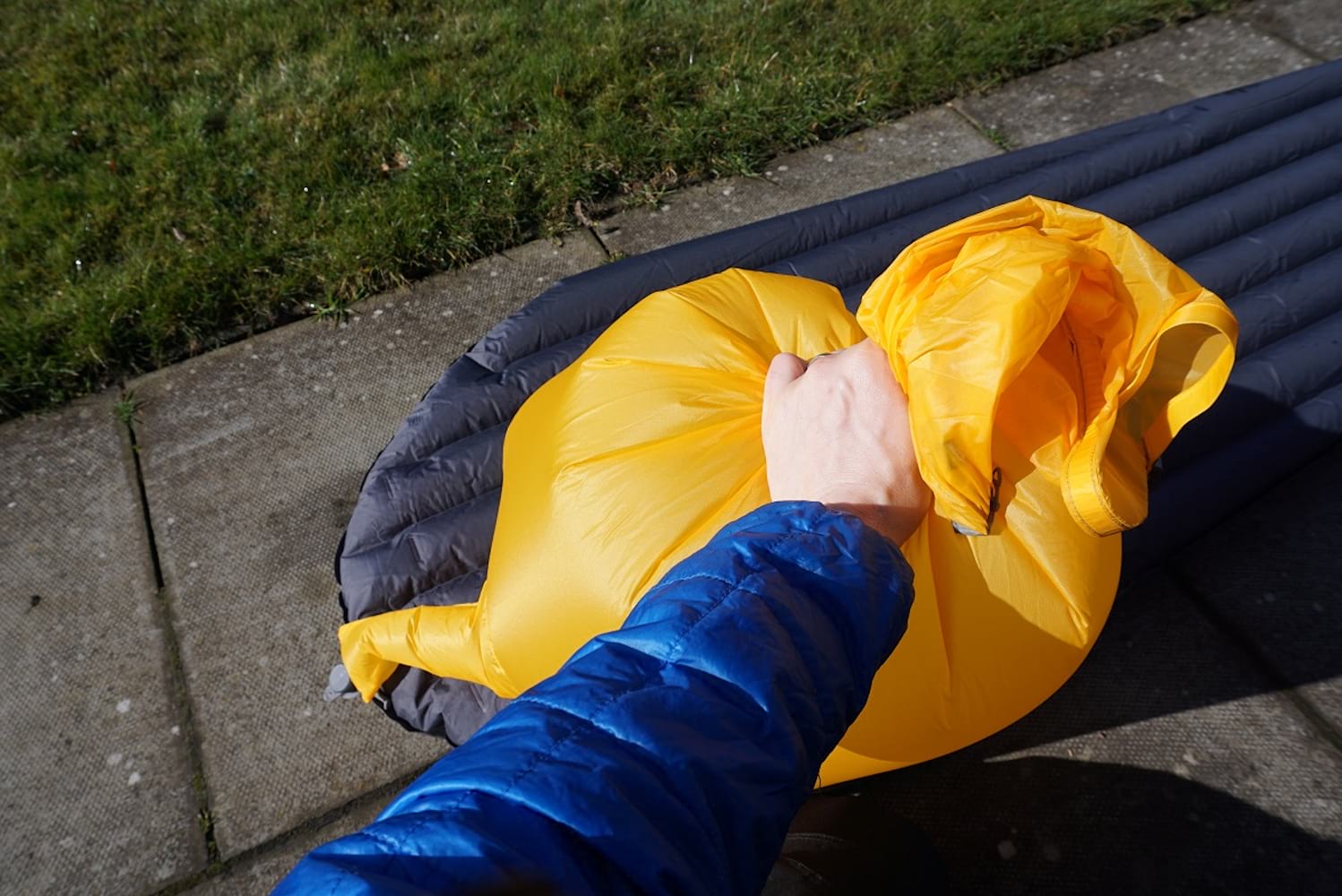 With a little practice, I managed to get the bag inflated with only four pumps from the Schnozzel bag. The technology is exactly the same as employed in packrafts and is really rather brilliant in its simplicity. Aside from making inflation a breeze (Enough already with the puns – Ed), the Schnozzel bag prevents unwanted moisture getting into the mat which can potentially lead to mould and compromising the insulation. Down and moisture do not comfortable bed fellows make.