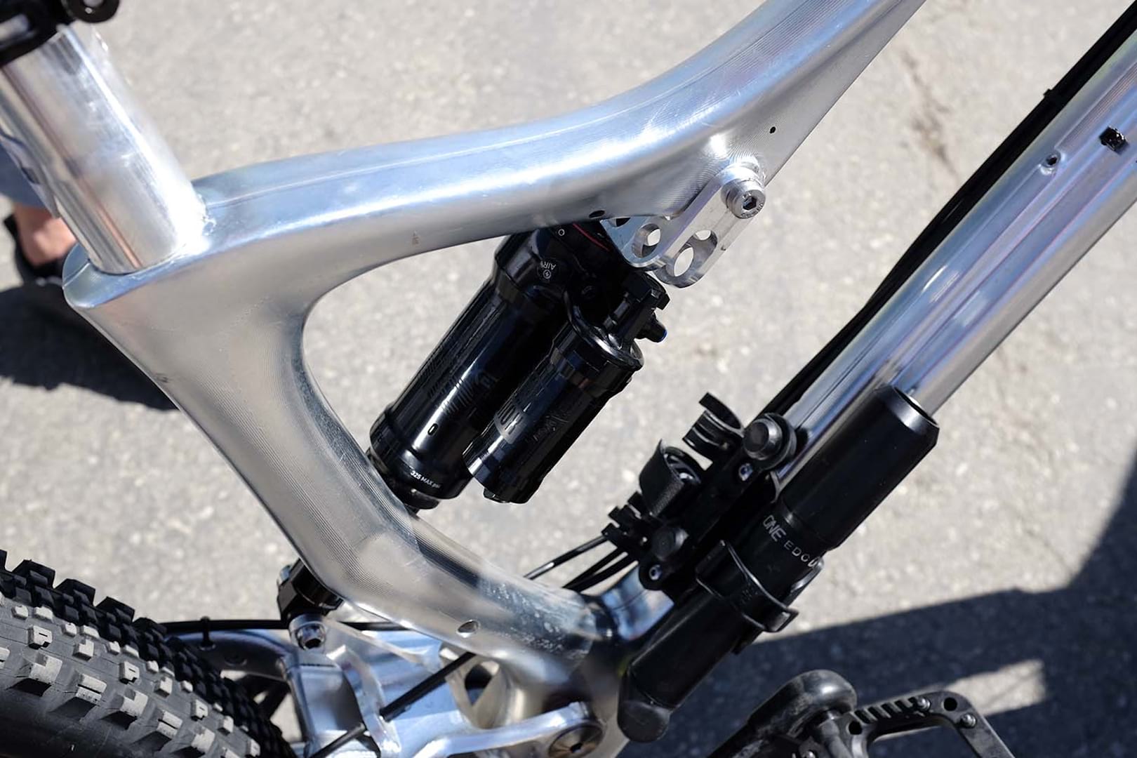 The frame is made in halves so why not make one side with that in mind. You could do that with carbon and CNC lets you use Al in a way you couldn’t with tubes. Flip that shock to TT mount over to get a different geo. Seems reasonable to me. The whole CNC thing, well if it works and tests OK, why not.