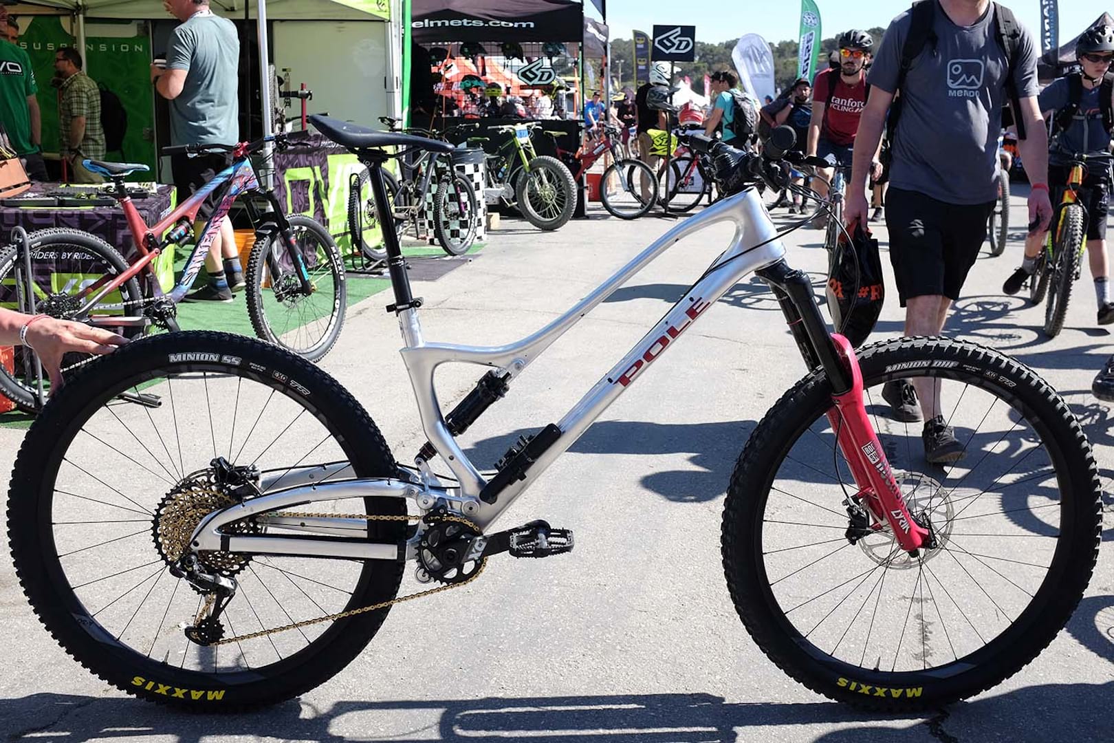 Having announced the Machine, back in November last year, Pole was showing the final pre-production models at Sea Otter. The bike is different to anything on show here, being machined from solid billet 7075 aluminium and then bolted and bonded together.