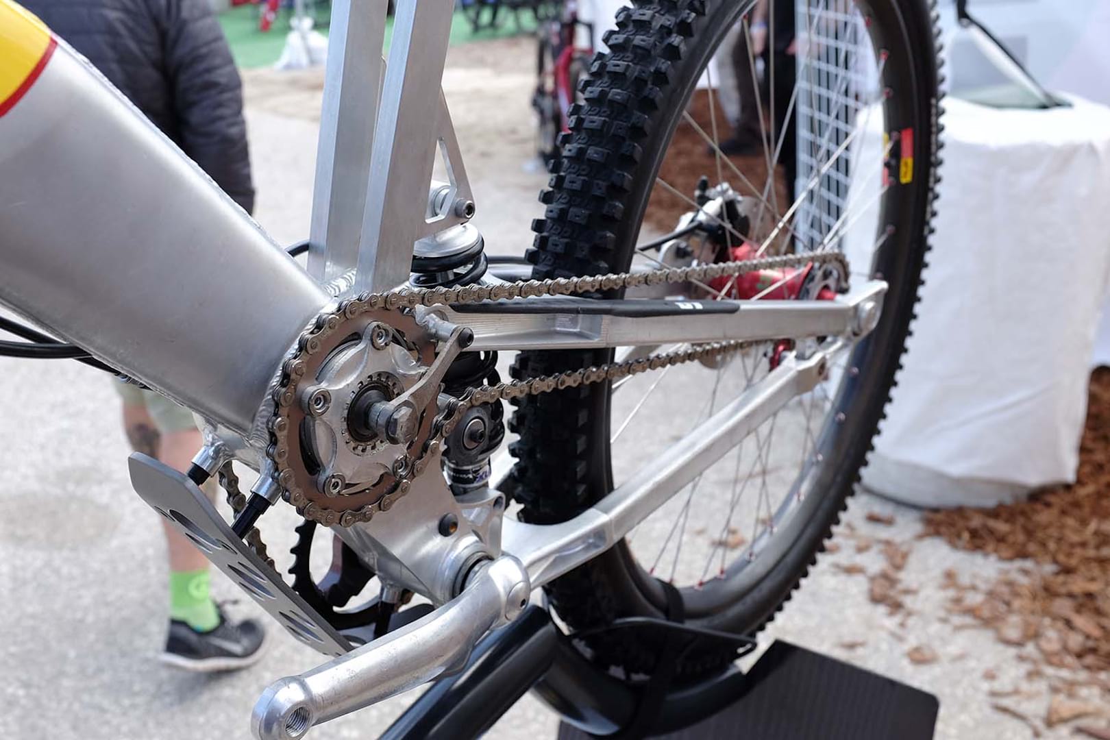 Meanwhile, back in 1996, this concept bike showed where many of the ideas of the iT-1 came from. This one used a seven speed Shimano Nexus hub bolted into the middle of a suspension design. Note the ‘wrong side’ chain drive and the equally wrong right hand rear brake.