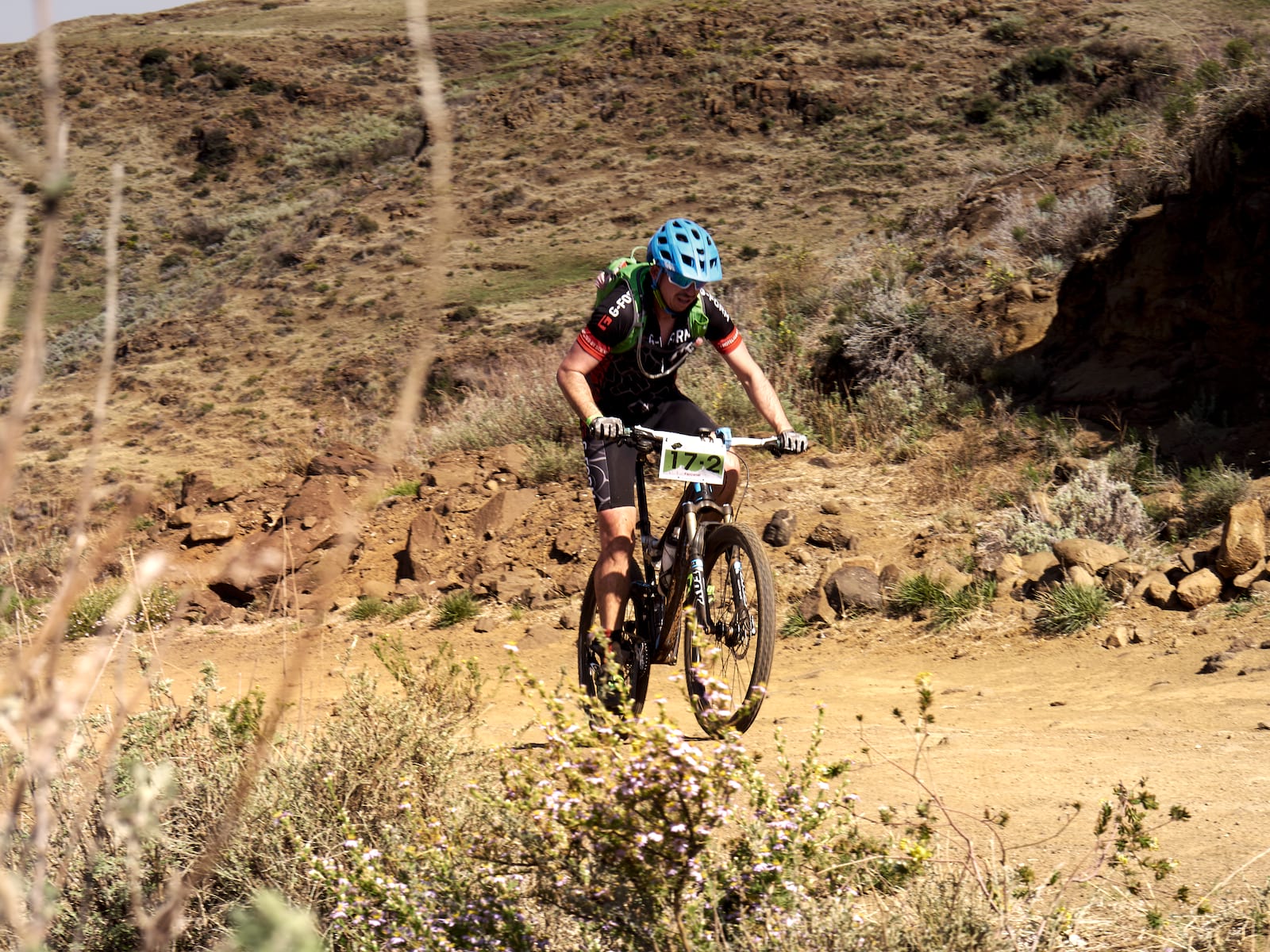 This was the first year that Lesotho Sky required the use of GPS instead of providing route marking. Sometimes it was a little difficult and we questioned the route when it looked like we might ride directly through a farmer’s pasture or a private footpath behind houses. But inevitably there would be a local nearby to point the way, assuring us we were still on track. And at the end of stage four we were happy to be back at the Ramabanta Lodge, taking in the views of the Maloti Mountains. Day five was one of our shortest (52 km), but most technical days, on a loop that brought us back to Ramabanta. The riding was fun and varied with steep, rocky downhills, flowy singletrack, technical uphills and creek crossings. I had so much fun that I forgot to feel tired. By this time, we had made friends with many riders in the back of the group and had fun both encouraging and heckling each other along the way. I love this about stage races – it is so easy to bond with people in this environment. At five to seven days, they offer the perfect mix of time, bike riding, and pain that inevitably brings people together.
