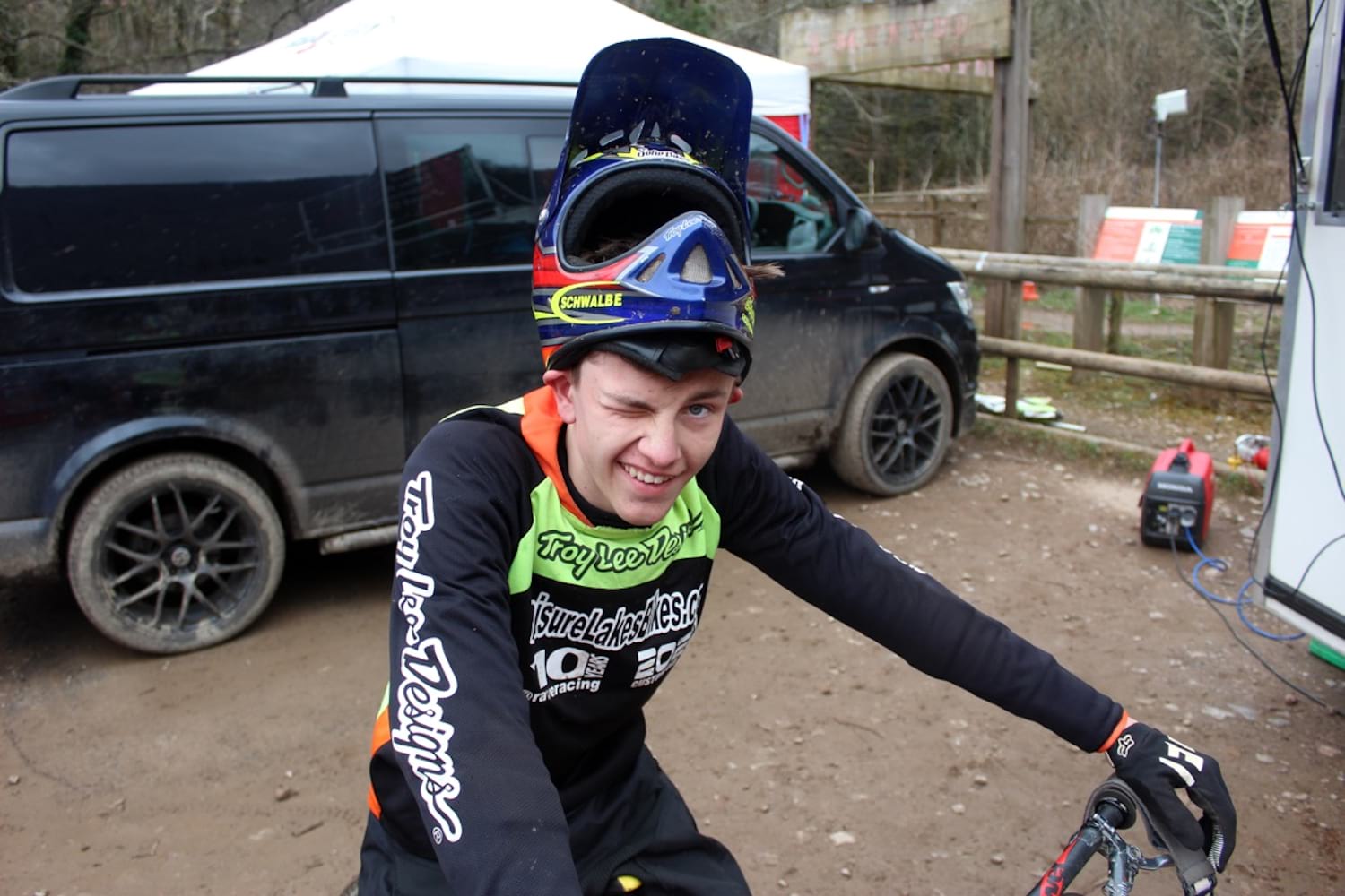 Talking of Elites, the fastest time of the day went to Matt Walker who took the win in Elite Men with a 2:29. His first ever race in Elite having stepped up from Juniors last season and the only person to go under 2:30 all weekend. Danny Hart was second and Mike Jones third. Watching the Elites in practice, Danny was the only person we saw going inside/inside after the road and manage to hold it for the roots. “There’s magic in those tyres” I thought at the time.