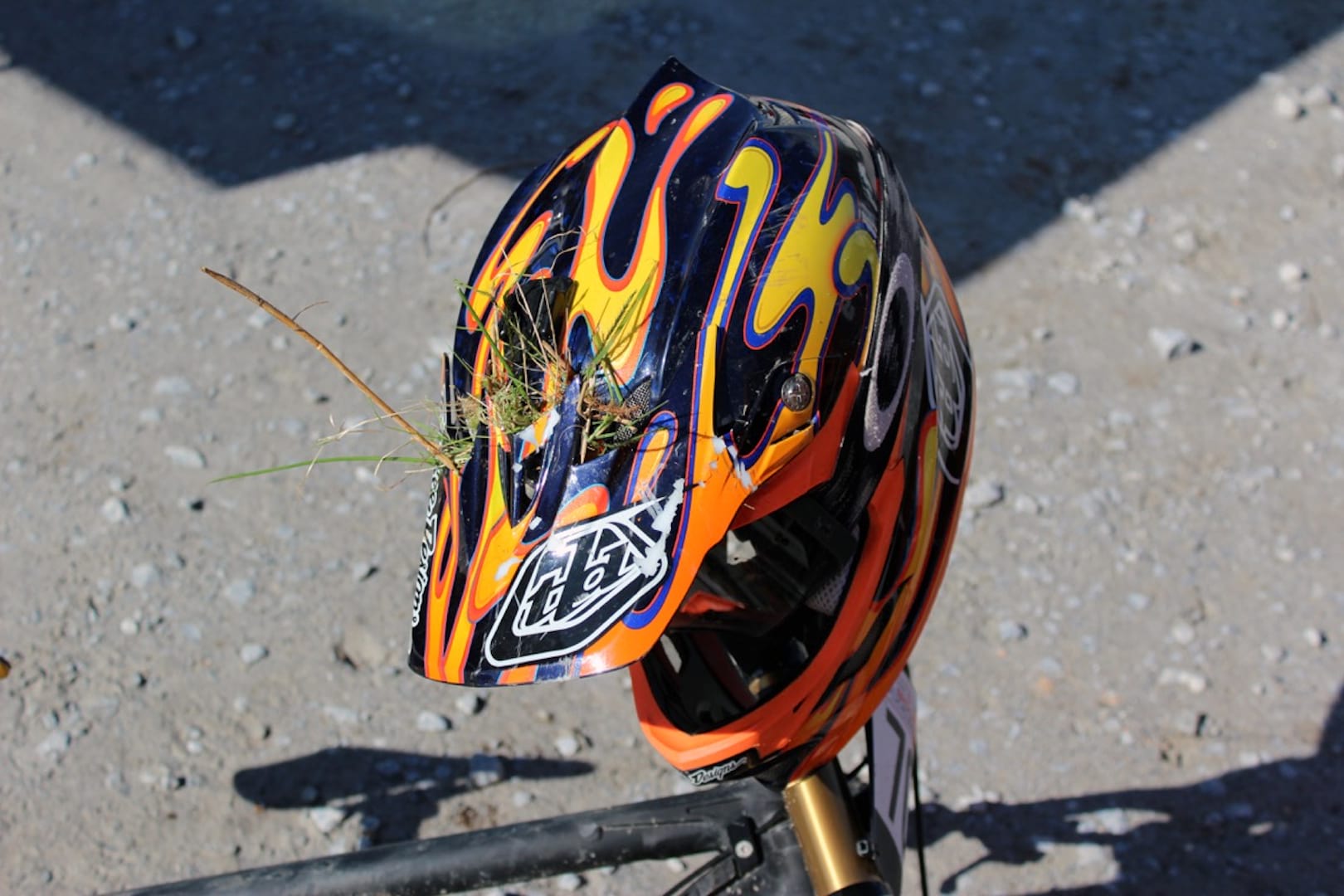 As we’re going up for our race runs we see red flags and a rider down after the hip. It looks bad and there’s a course hold for nearly an hour. By the time we’re racing it’s over 4 hours since we’ve last done a run and I’ve lost any semblance of rhythm. In my seeding run I was only 6 seconds behind Cocky so we’re racing but I think it’s harder than seeding. The wind’s got up and I feel tired. I keep getting glimpses of Donald Miller, the rider in front of me though so I’m not doing too badly but then I lost concentration, braking in the berm before The Motorway. I pedalled as hard as I could but there was a bloody head wind and I knew the second I left the step down that I wasn’t going to make it. Big crash. Big cheers when I got up. Another visor destroyed.