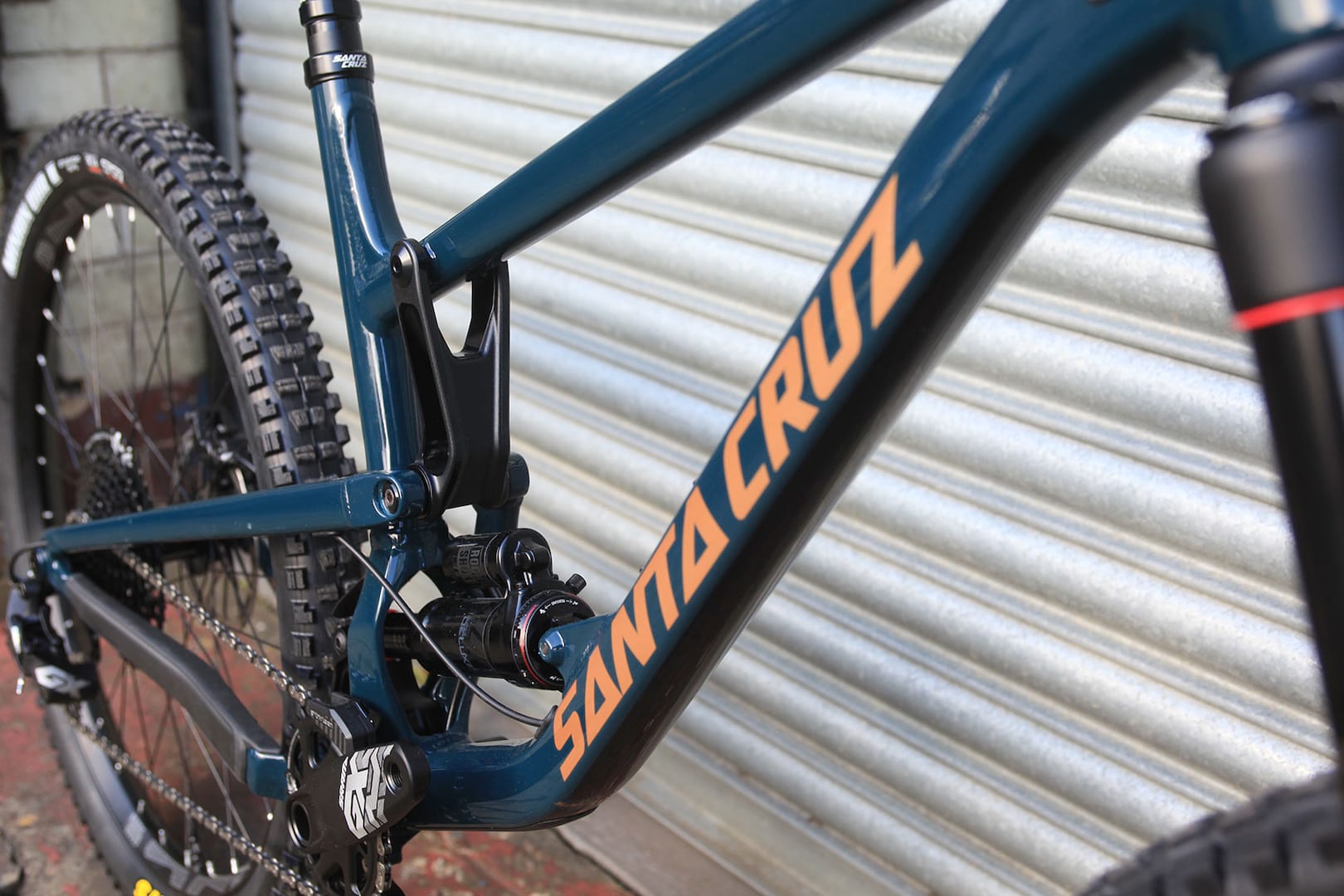 This is an alloy Nomad from Santa Cruz, in the higher of the two alloy specs available. With a RockShox Lyric R170 up front, SRAM GX Eagle groupset, and SRAM Code R brakes, you get a build package that comes in at £700 less than the carbon equivalent, but weighs 1kg more.